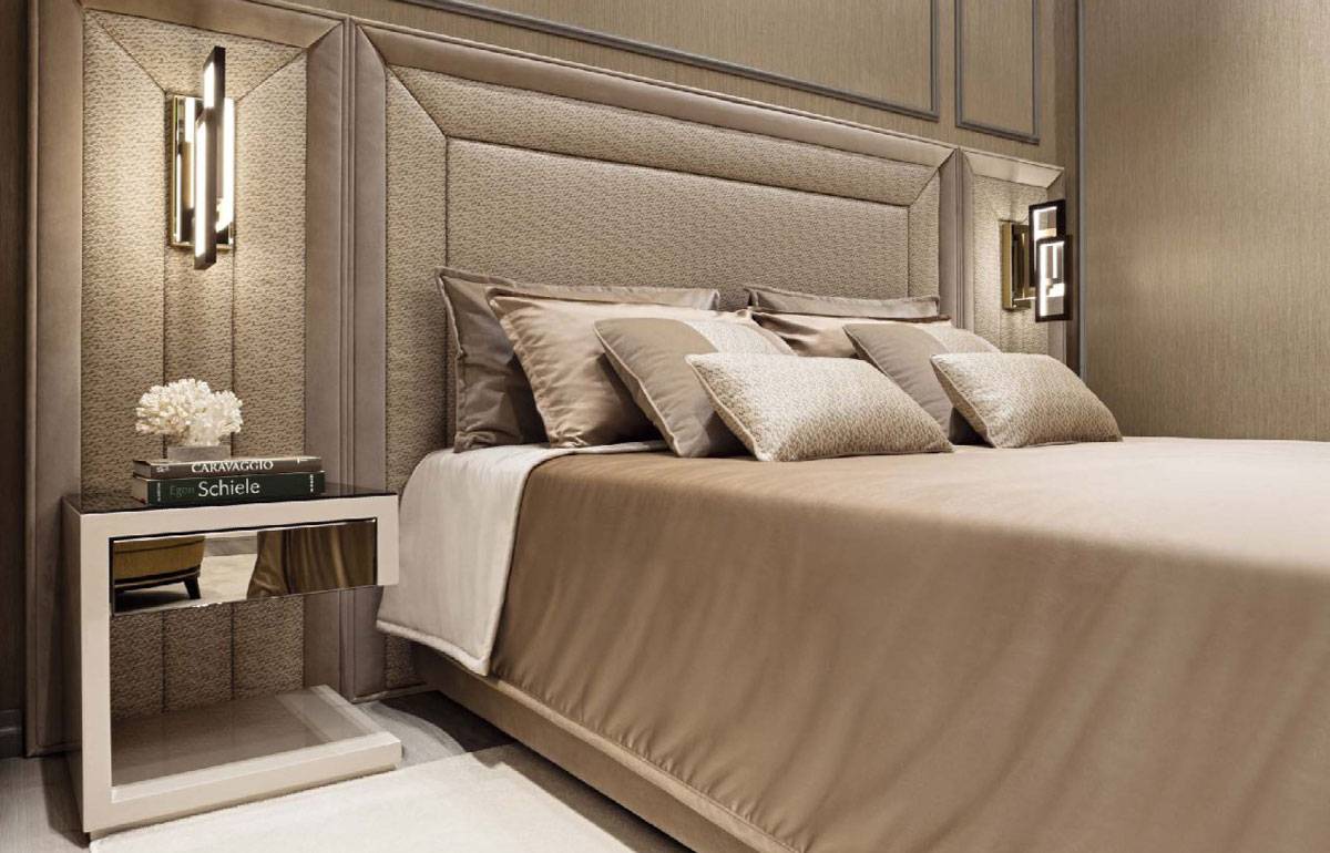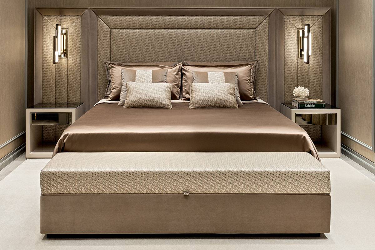 Коллекция включает в себя двуспальную кровать и скамью, сочетающие элегантность и комфорт.