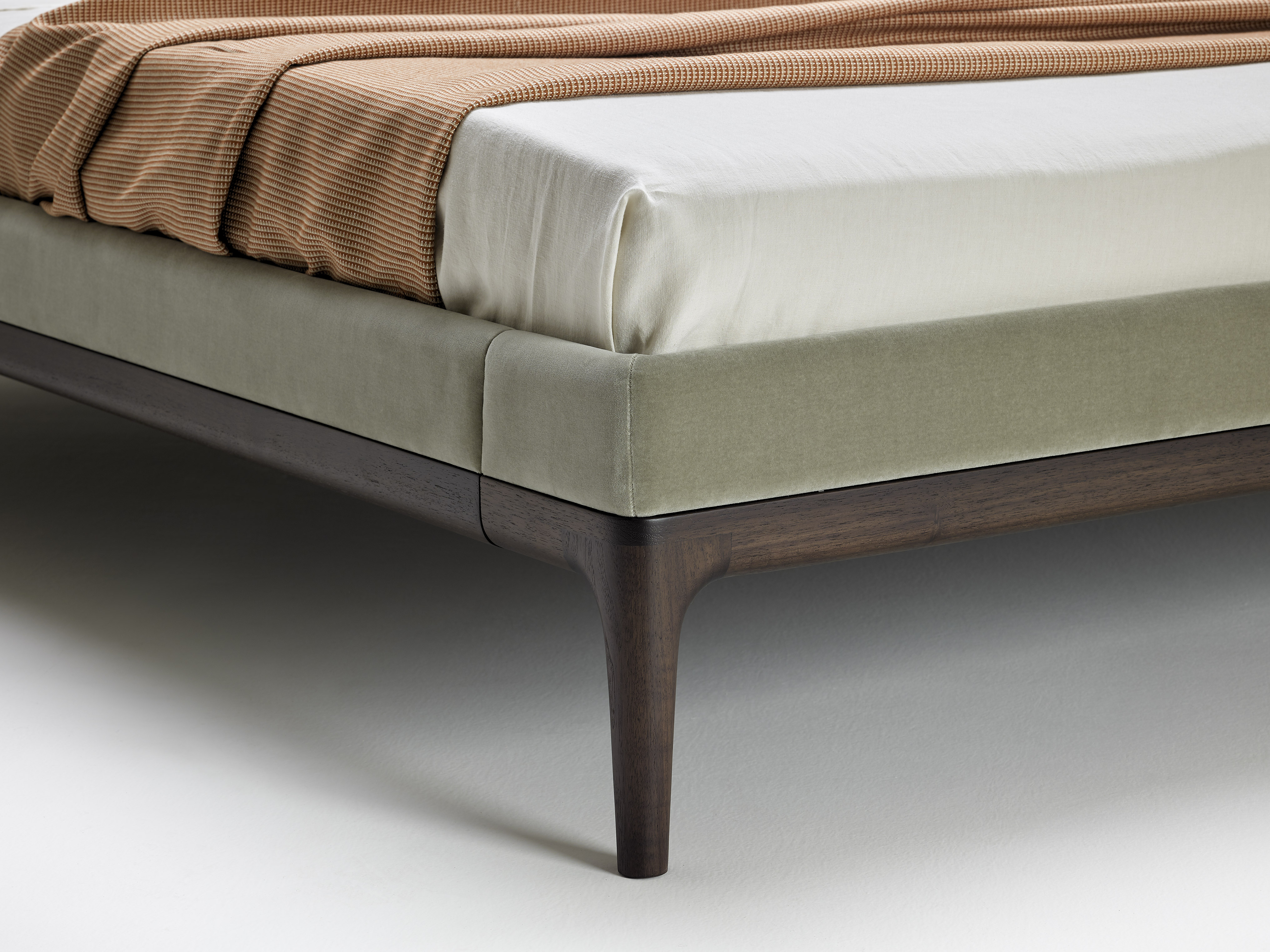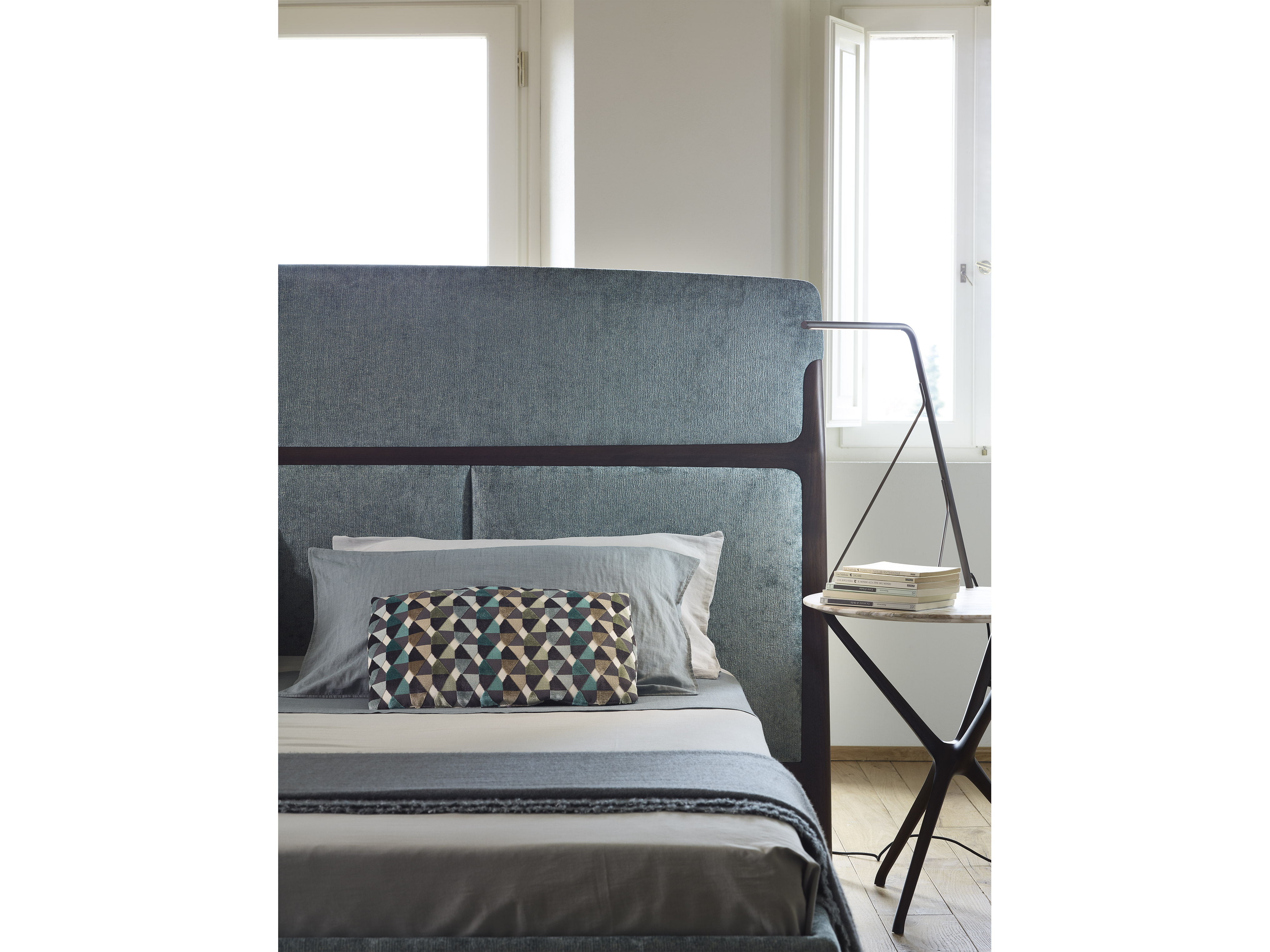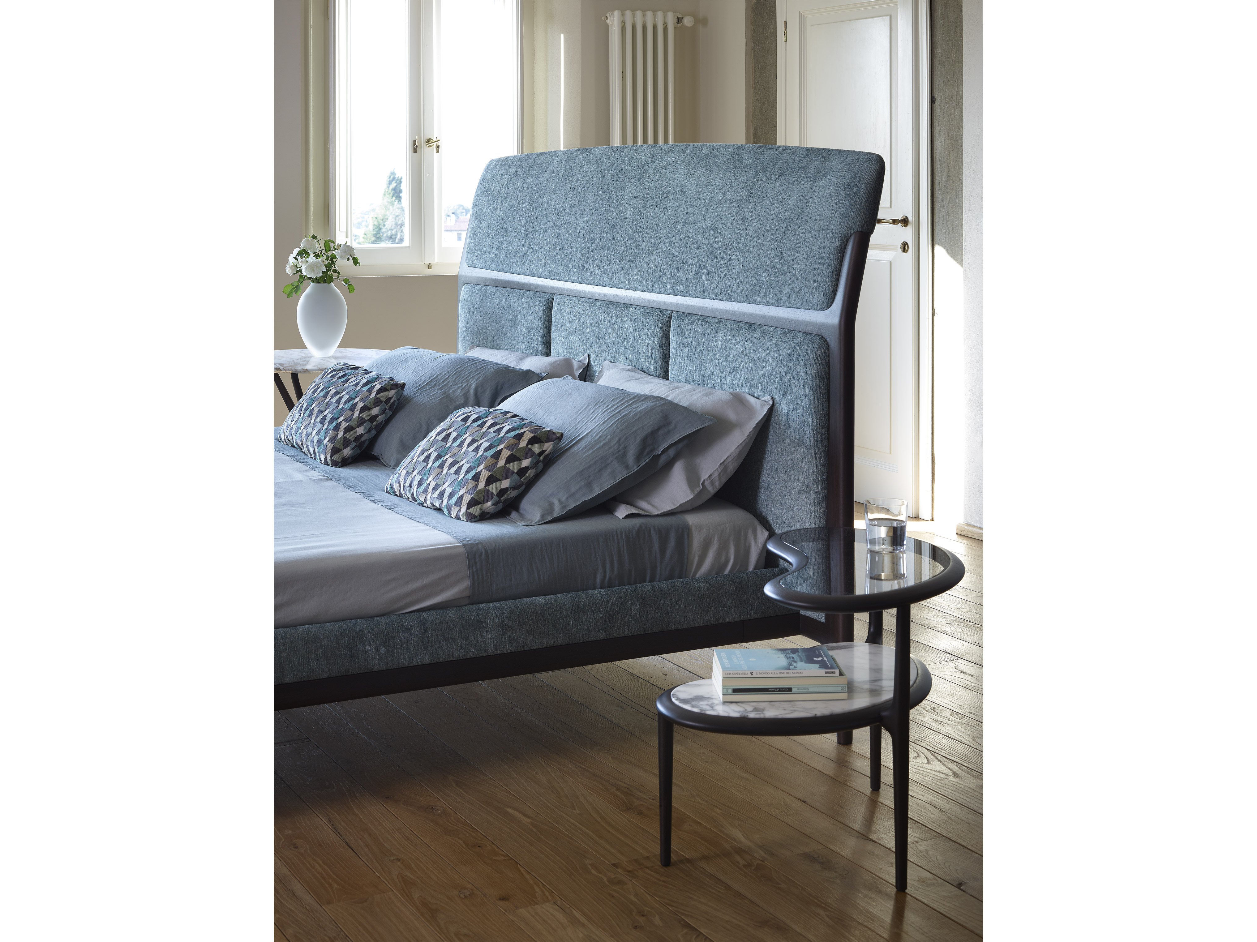 Кровать Tomorrow Morning, созданная по дизайну Роберто Лаззерони, представляет собой кровать из массива американского ореха, отличающуюся высоким изголовьем и шириной, чем сама кровать. Изголовье предназначено для чтения, а верхняя часть наклонена назад, чтобы освободить место для подушек. Резная деревянная перекладина отмечает границу между верхней и нижней частями, разделенными на три мягкие секции. Конструкция кровати поддерживается четырьмя тонкими ножками, которые придают ей ощущение легкости, несмотря на ее большие размеры. Tomorrow Morning была спроектирована с учетом универсальности: кровать имеет прочное деревянное основание, приподнятое над землей и окруженное мягкой конструкцией, что позволяет использовать буковые рейки в качестве альтернативы классическому основанию из шпонированной фанеры. Мягкие части кровати могут быть обтянуты тканью или кожей.