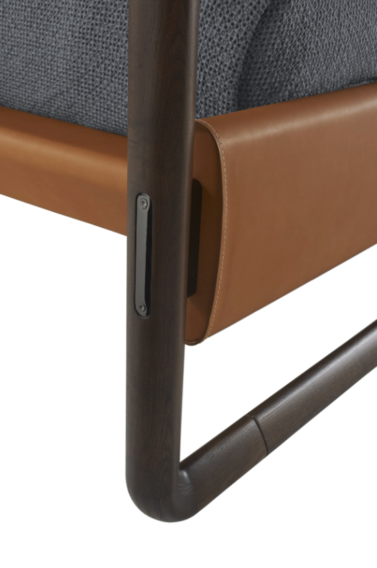 Дерево, кожа. Каркас из массива ясеня цвета Moka.