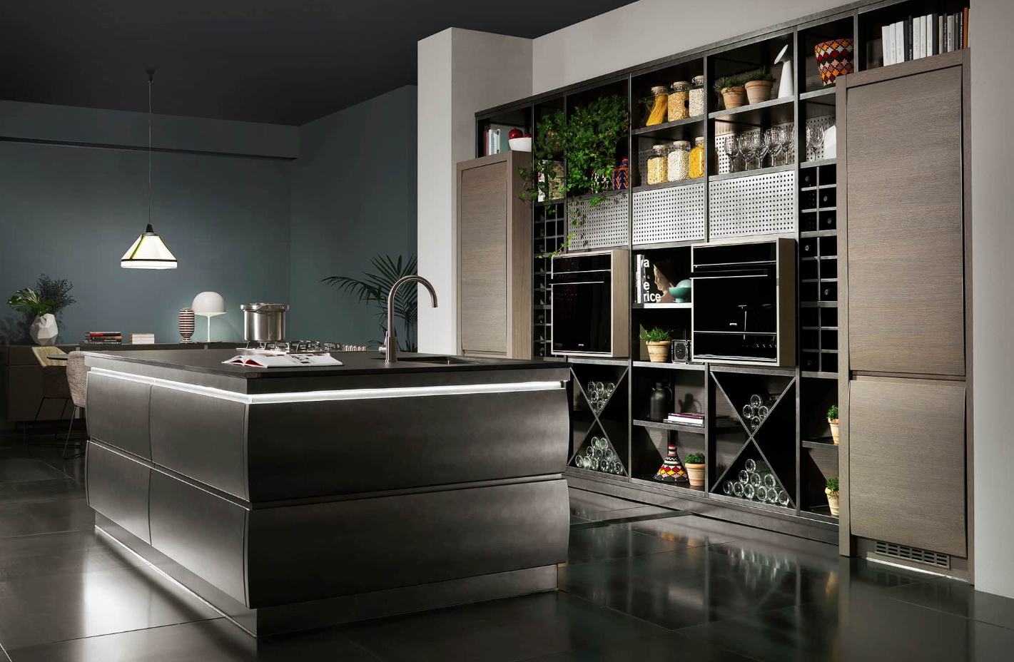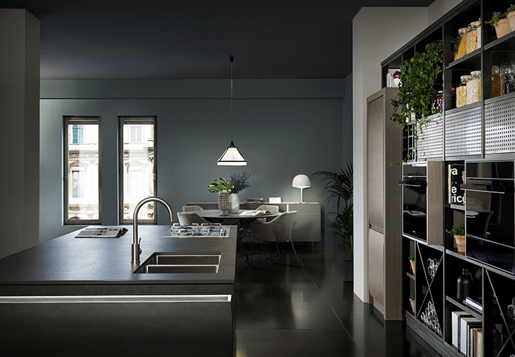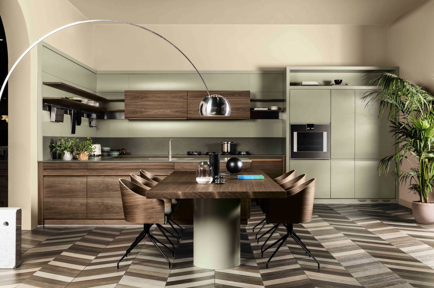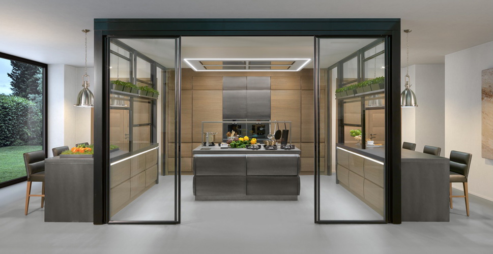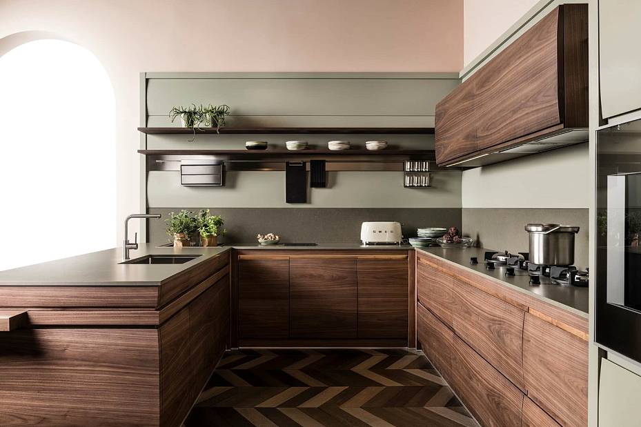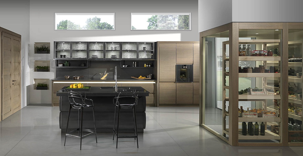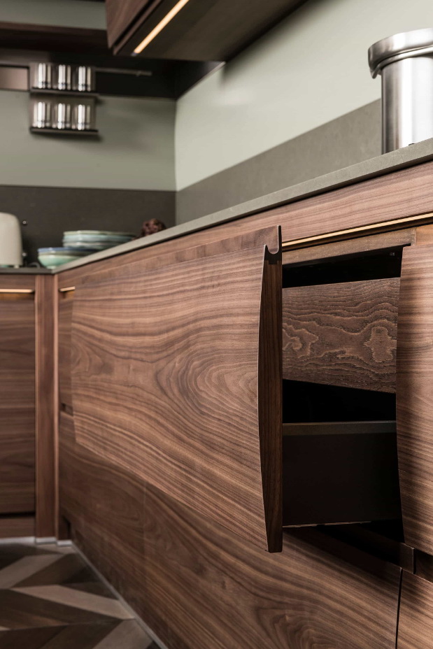 Выпуклость дверец – отличительная черта всех кухонь Chronos, которые совмещают в себе стилистическую утончённость, ценные материалы и высокие технологические решения. Материал – массив дуба или ореха.