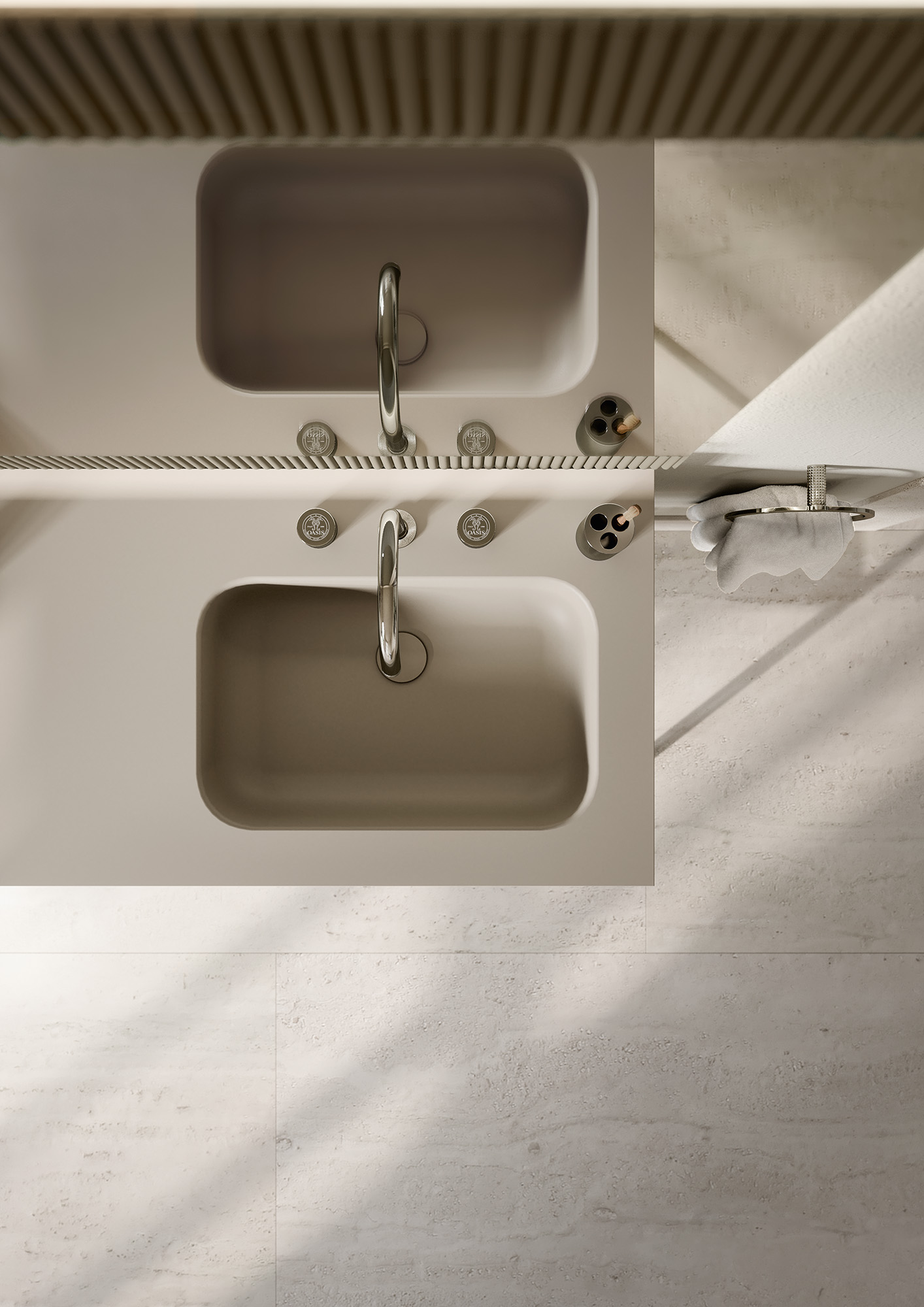Сегодня Oasis - это семейный бизнес, история которого насчитывает более ста лет и чьи принципы основаны на смелости, традициях и силе личности. Во главе компании стоит Франческо Куаиа и его дети: Франческа Куаиа (коммерческий директор), Федерика Куаиа (арт-директор) и Лоренцо Куаиа (начальник производства). В настоящее время компания Oasis присутствует на рынках более 25 стран, среди которых основными являются: Россия, Украина, Китай, Великобритания, Германия, Франция, Швейцария, Бельгия, Индия и Соединенные Штаты Америки. Портфолио продукции компании Oasis включает в себя широкий выбор коллекций мебели для домашнего интерьера HOME с бестселлерами: светильниками Edge, Moon; письменными столами: Dama и Proust; ванными комнатами BATHROOM c знаменитыми коллекциями Academia и Lutetia, а также мебели для подразделения CONTRACT, предназначенного для осуществления проектов, связанных с сооружением жилых и общественных зданий.