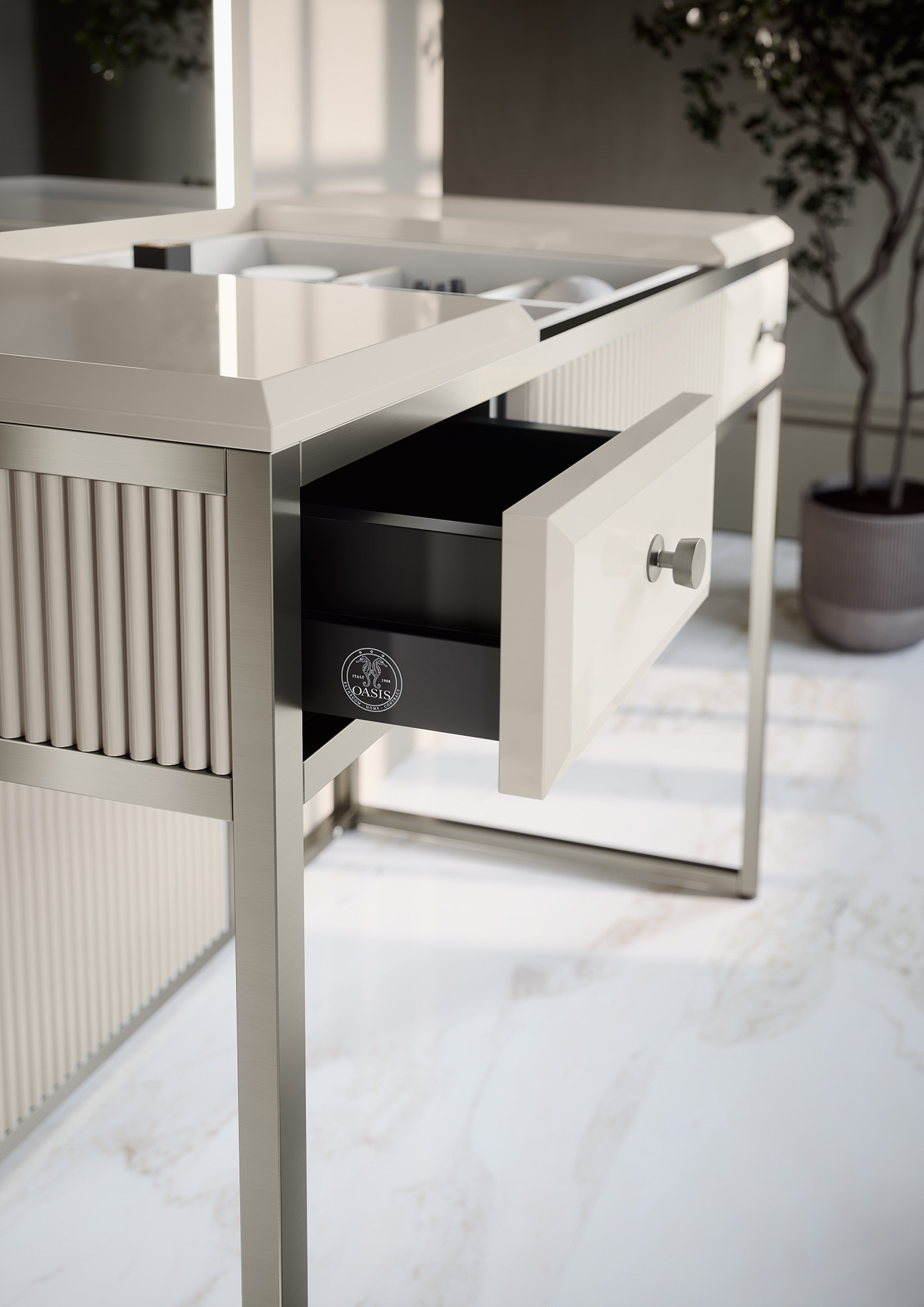 Сегодня Oasis - это семейный бизнес, история которого насчитывает более ста лет и чьи принципы основаны на смелости, традициях и силе личности. Во главе компании стоит Франческо Куаиа и его дети: Франческа Куаиа (коммерческий директор), Федерика Куаиа (арт-директор) и Лоренцо Куаиа (начальник производства). В настоящее время компания Oasis присутствует на рынках более 25 стран, среди которых основными являются: Россия, Украина, Китай, Великобритания, Германия, Франция, Швейцария, Бельгия, Индия и Соединенные Штаты Америки. Портфолио продукции компании Oasis включает в себя широкий выбор коллекций мебели для домашнего интерьера HOME с бестселлерами: светильниками Edge, Moon; письменными столами: Dama и Proust; ванными комнатами BATHROOM c знаменитыми коллекциями Academia и Lutetia, а также мебели для подразделения CONTRACT, предназначенного для осуществления проектов, связанных с сооружением жилых и общественных зданий.