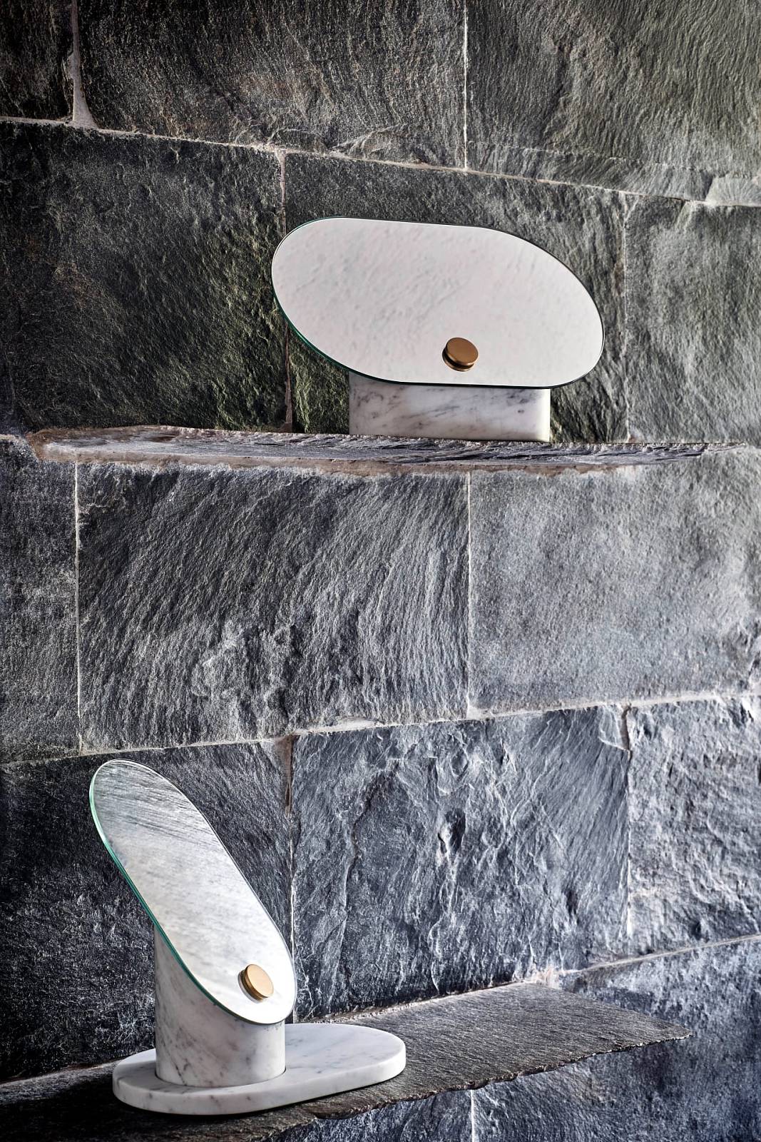 Горизонтальные или вертикальные настольные зеркала с основанием из белого каррарского мрамора или черного мрамора Маркина.