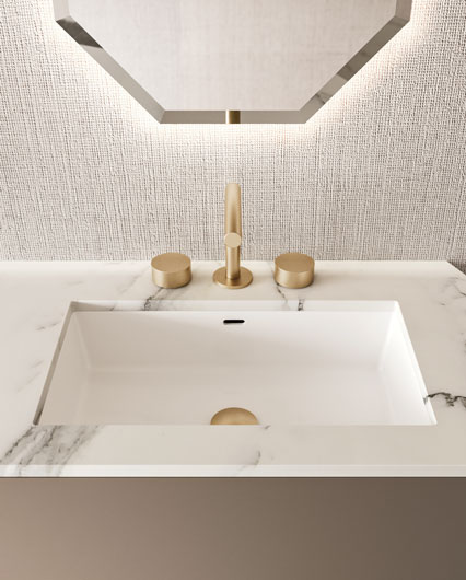 Столешница из мрамора arabescato с белой глянцевой встроенной керамической раковиной Panama47 (Ш 195 cm Г 47,2 cm В 2 cm)
