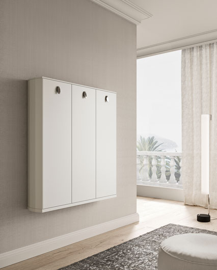 Пеналы, отделка боковин, верхнего и нижнего профиля матовая лакировка «nuvola», ручка хромированная (Ш 113,6 cm Г 23 cm B 124,2 (120+3+1,2) cm)