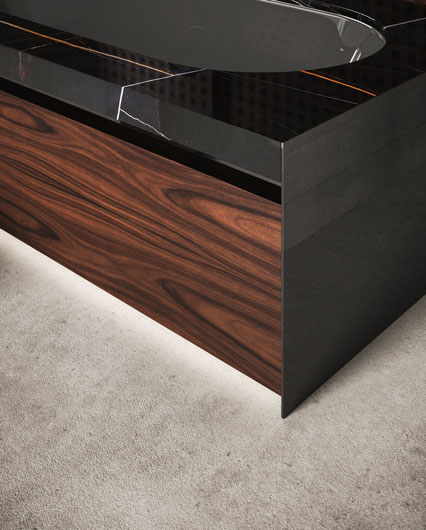 Основной фокус коллекции Four Seasons - на уникальных дорогих материалах, которые варьируются от мрамора до стекла, от дерева до кожи. Благодаря эксклюзивным процессам обработки, где традиционное мастерство сочетается с передовыми технологиями, изначально роскошные материалы приобретают дополнительную ценность и особую красоту.