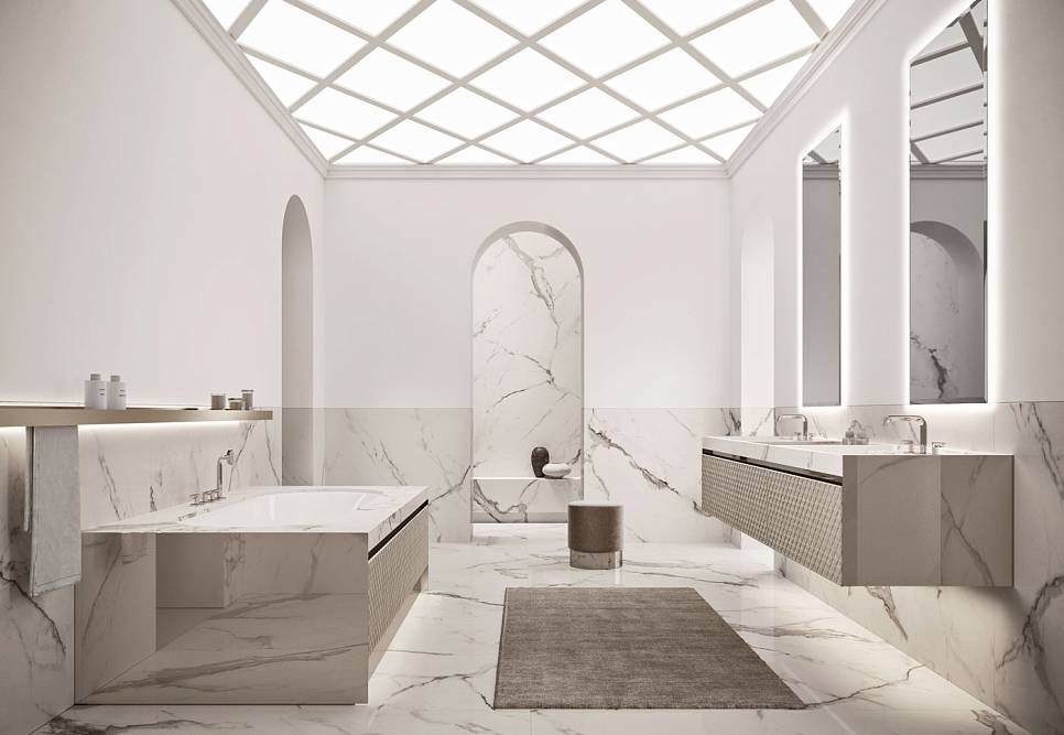 Встроенная столешница Miami из полированного мрамора arabescato (Ш 234,8 cm Г 55,6 cm В 7 cm).