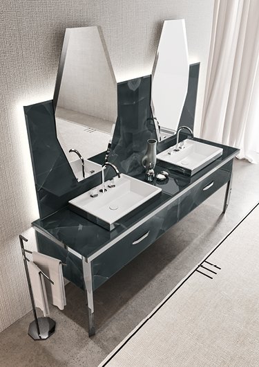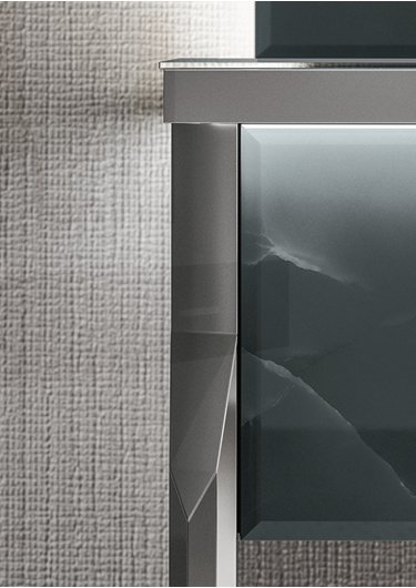 Тумбы для раковины extrachiaro onice smoke с скошенным краем, профиль столешницы и ножки из полированной стали (Ш 230,2 cm Г 58,8 cm В 77 cm)