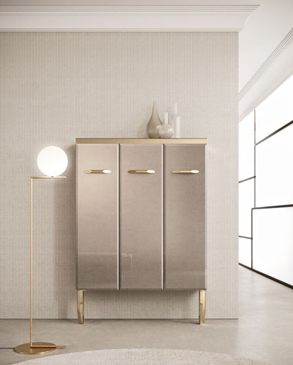 Пенала из прозрачного стекла elephant gold со скошенным краем, ножки Zurigo из хромированной стали золотистого цвета (Ш 108 cm Г 23 cm B 120 cm)