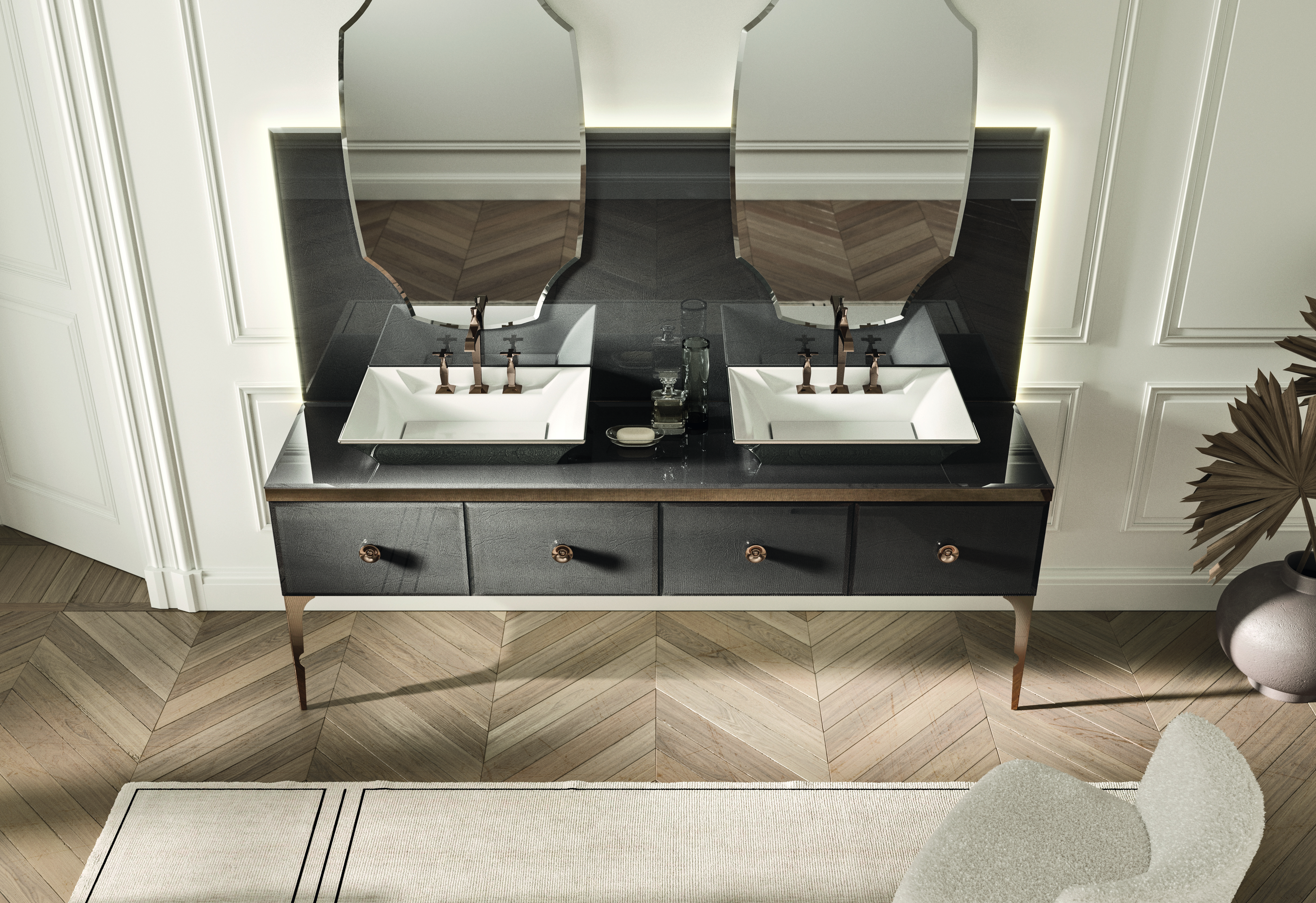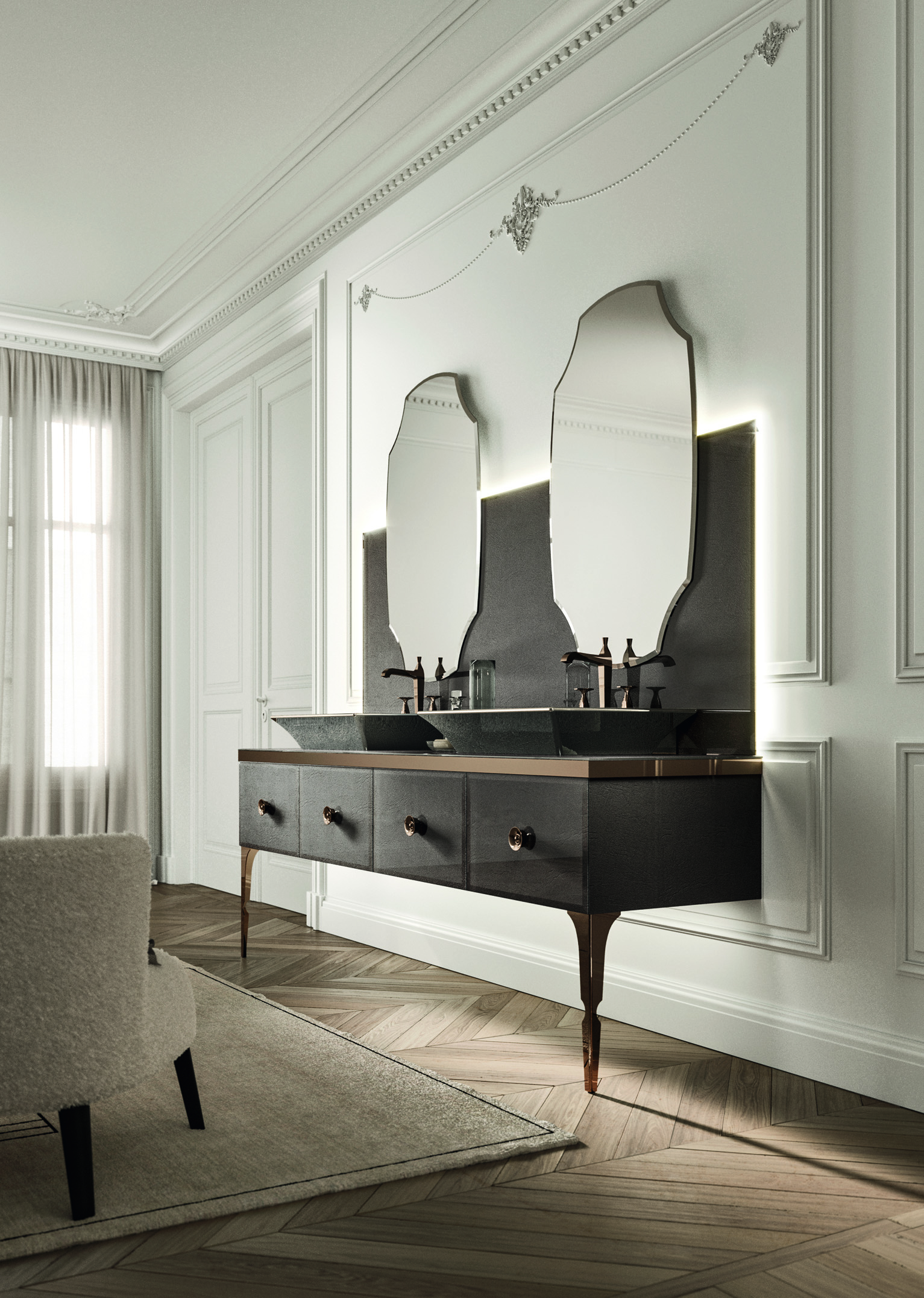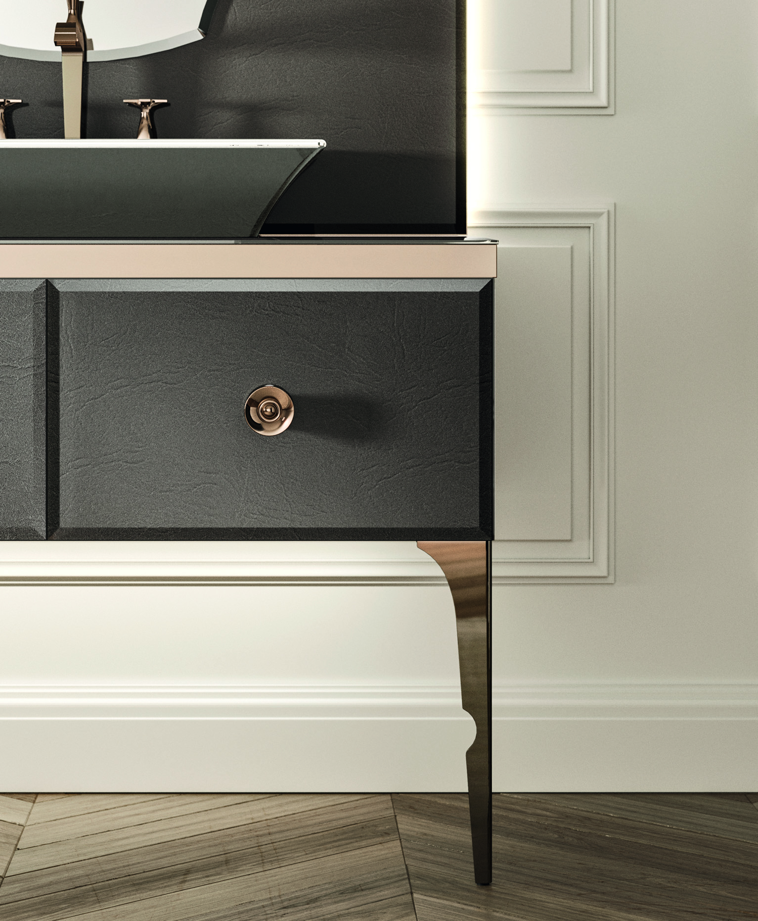 Последние новости: металлические ножки, знаковый элемент коллекции Majestic, теперь имеют более ажурный дизайн в сочетании с ручкой, отличающейся лёгким и изящным дизайном. Ещё одной новинкой коллекции является отделка под драгоценный мрамор в сочетании со стеклом: уникальное решение, вошедшее в обширную коллекцию доступных отделок.