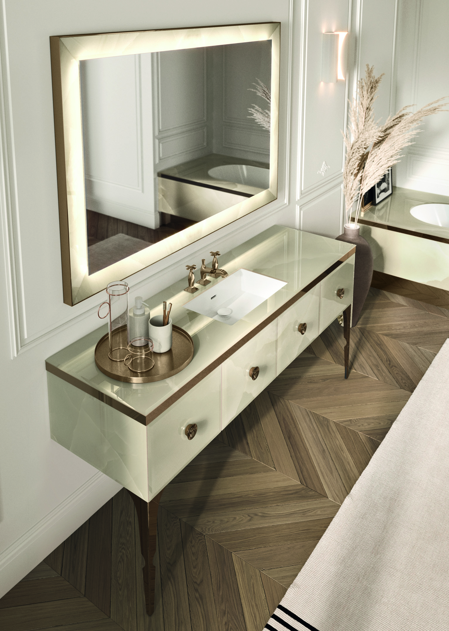 Знаковая коллекция Majestic - это эксклюзивная интерпретация интерьера ванной комнаты. Эта коллекция отличается изящными деталями, мягкими, обволакивающими формами и использованием стекла, что даёт изысканный глянцевый блеск фасадов и столешницы. Практичная элегантная ванная комната, отражает как современное прочтение классики, так и традиционные решения. Изящные детали и ненавязчивые декоративные штрихи помогают создать элегантную и неподвластную времени атмосферу.