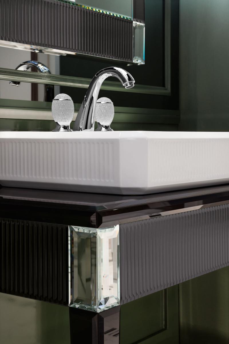 Лак глянец/крашенное стекло/зеркальные вставки/раковина керамика