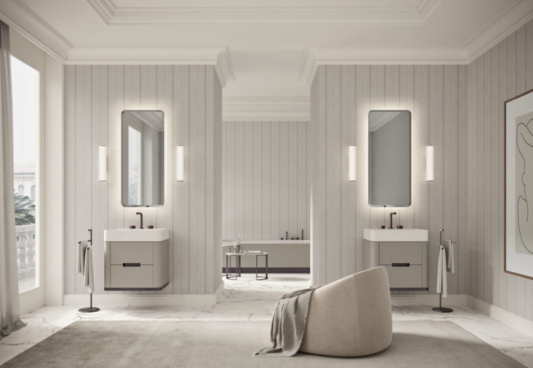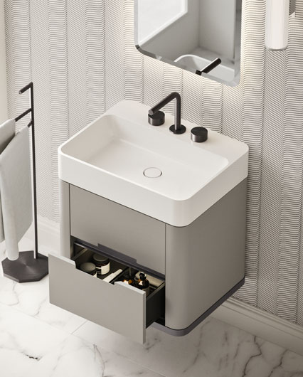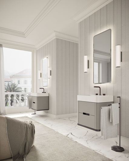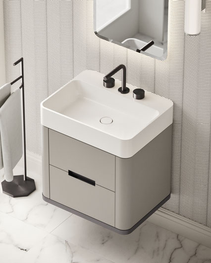Тумбы панели с матовой лакированной отделкой agata, нижним профилем в сатинированной отделке oro nero (Ш 60 cm Г 47 cm В 51 (48+3) cm)