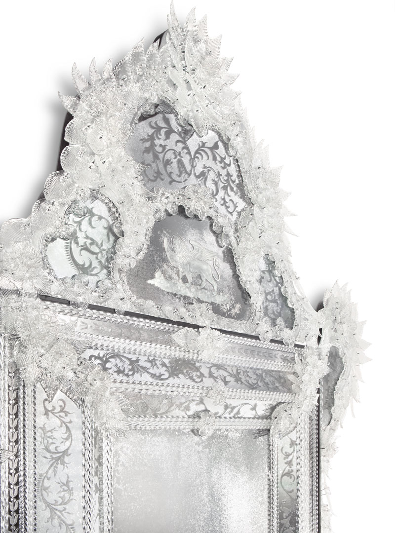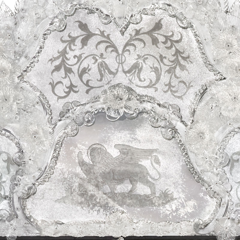 Центральное стекло ручной работы с античной зеркальной отделкой.Рамы и герб изготовлены из стекла ручной работы с гравировкой и антикварным зеркальным покрытием.