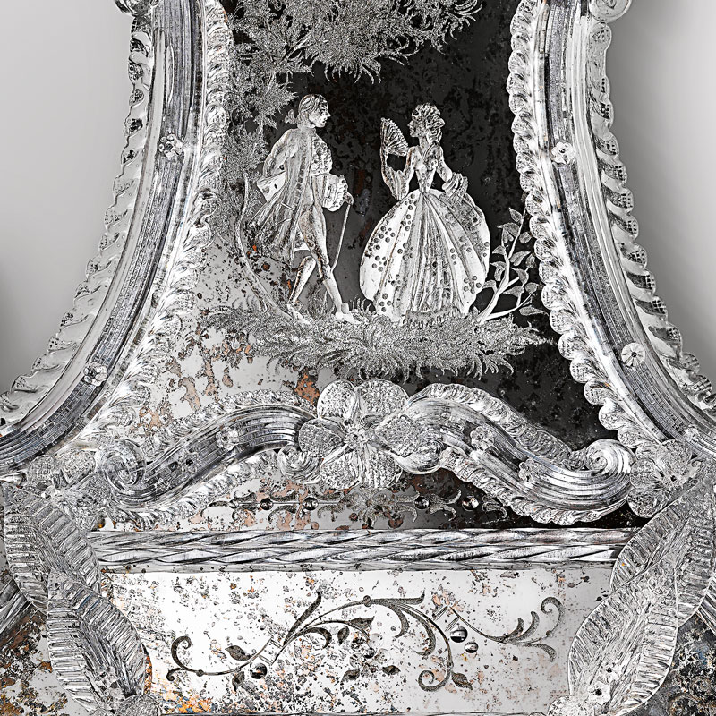 Центральное стекло с античной зеркальной отделкой.Рамы и герб изготовлены из стекла ручной работы с гравировкой и антикварным зеркальным покрытием.