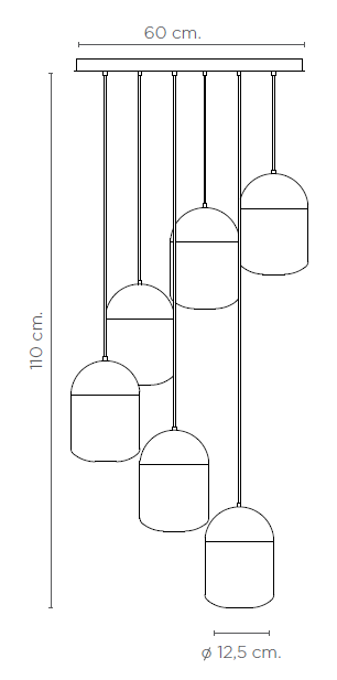 D основания 60 см, 6 подвесов диаметром 12,5 см. Регулируемая высота.