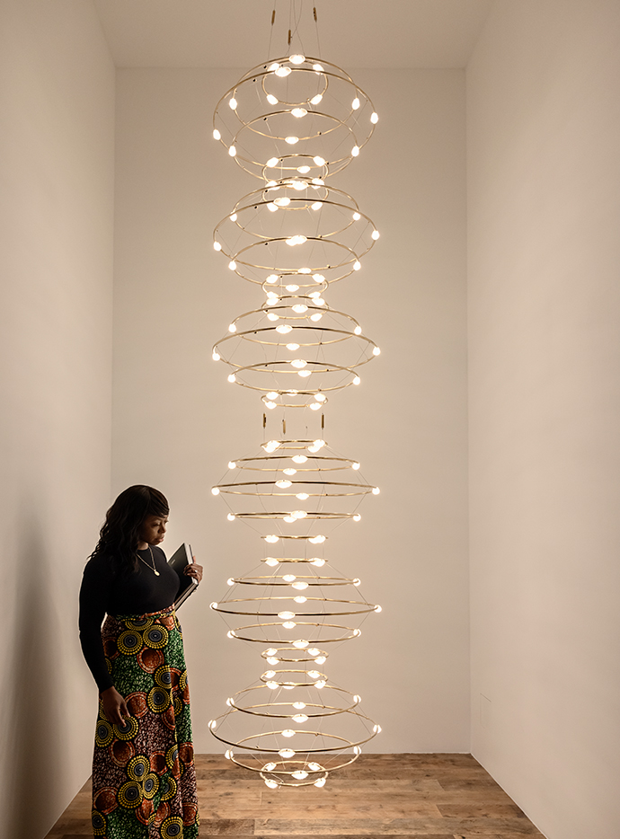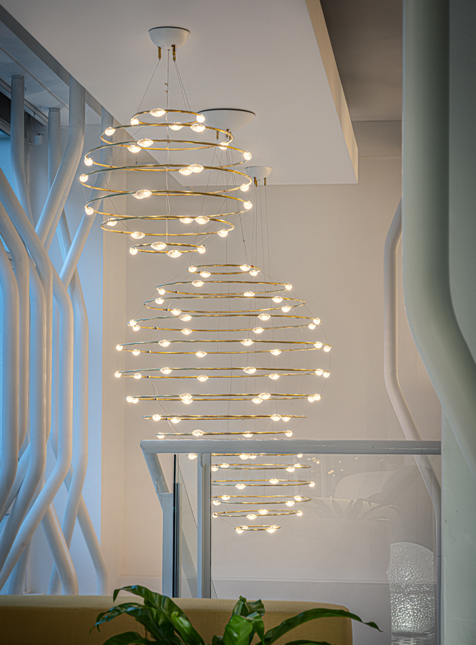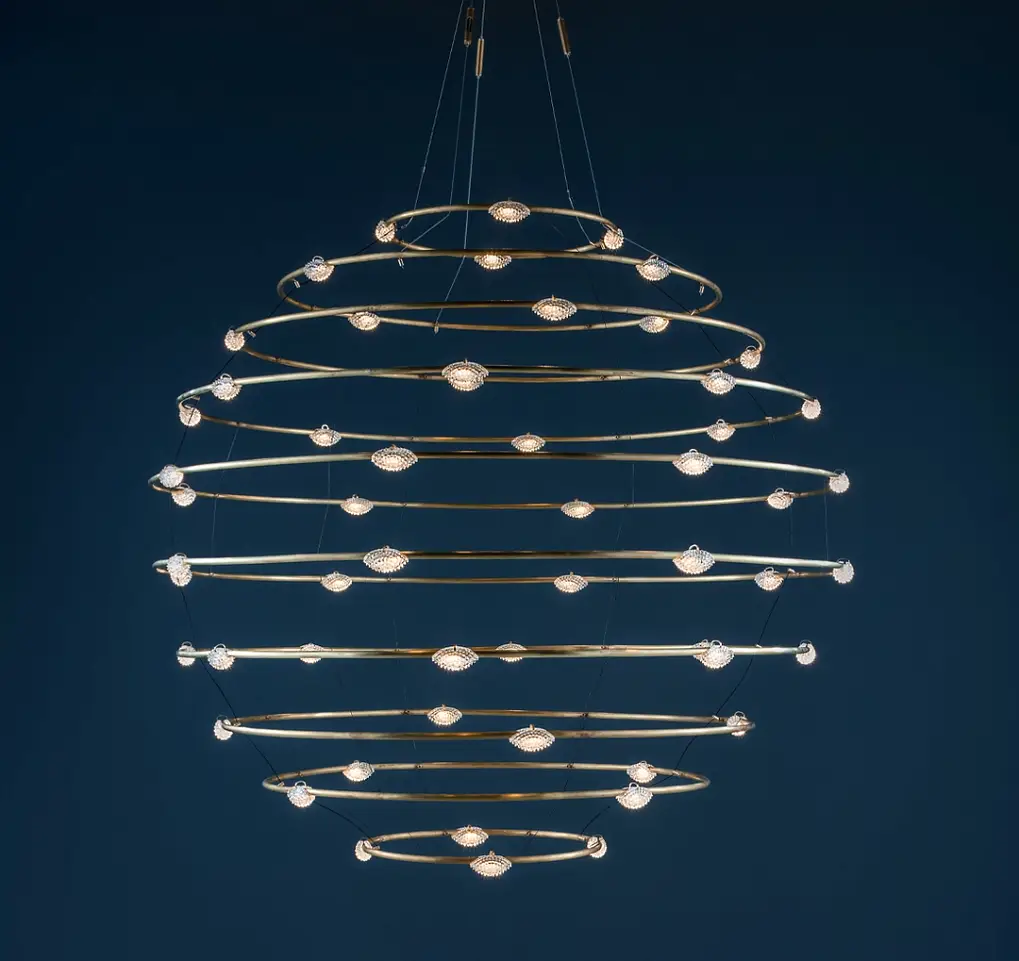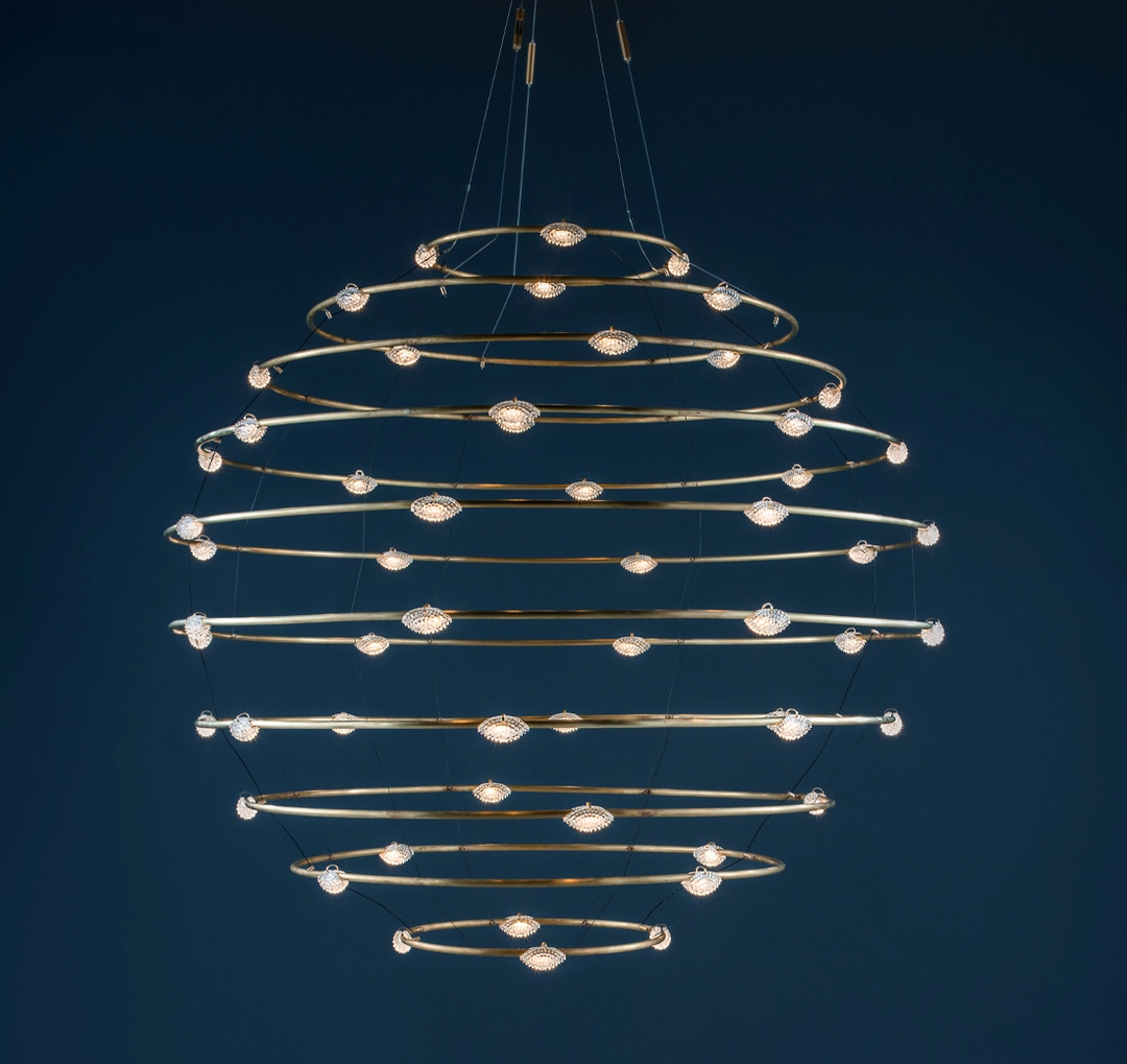 Petits Bijoux воплощает идею «статического движения», напоминая расходящиеся круги по воде от брошенного камешка. Сферы и круги — вечные метафоры бесконечности и идеала, сквозная тема 30-летней истории Catellani & Smith. В новой подвесной коллекции лаконичность этих форм встречается с виртуозной и нестандартной техникой исполнения.