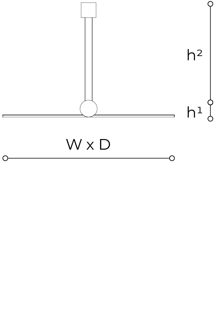 2) Ширина -160 см, глубина - 14 см, h1 - 14 см, h2 - 10/150 см