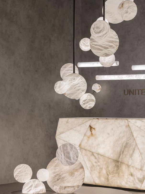 Алебастр - это роскошный природный материал, который обладает удивительной пластичностью: он имеет неповторимую структуру, позволяющую свету проникать сквозь его "вены" и не просто освещать пространство, а создавать визуальные эффекты, будоражить воображение и вдохновлять!