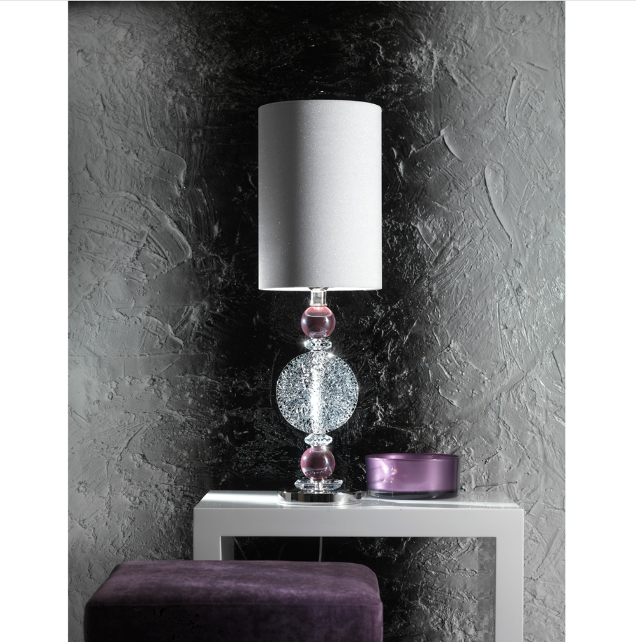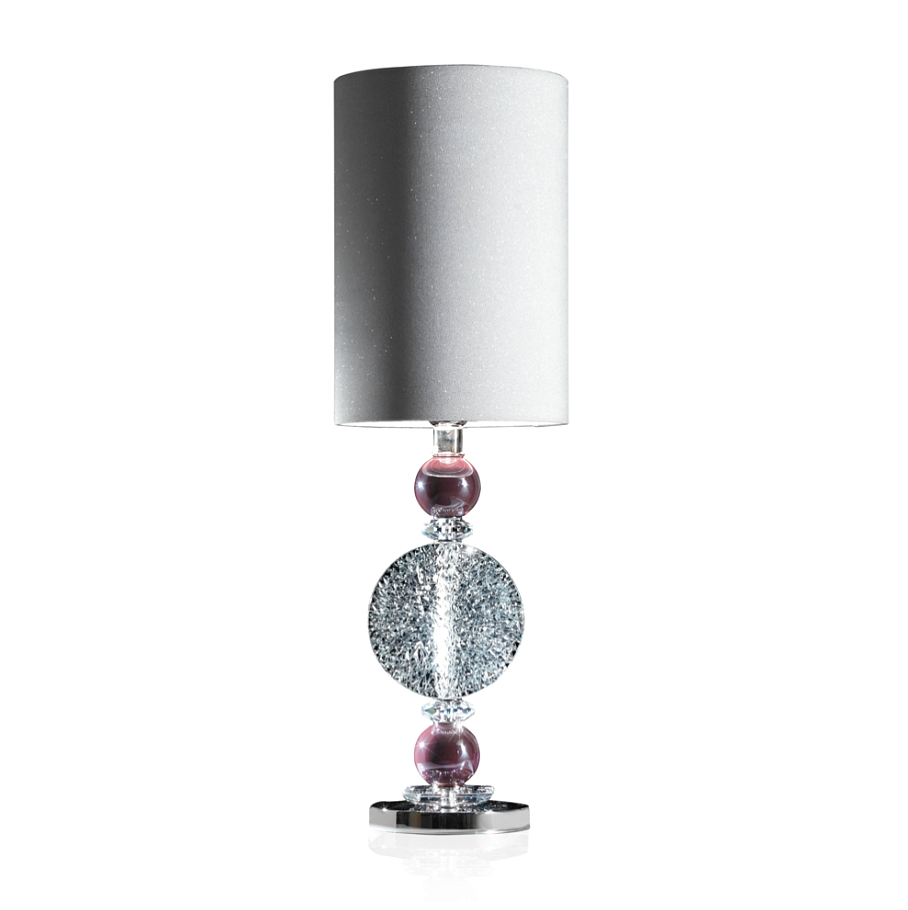 Латунь, хрусталь, майолика. Абажур из шелка.