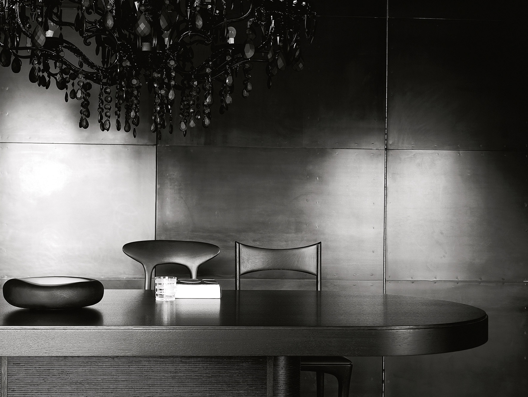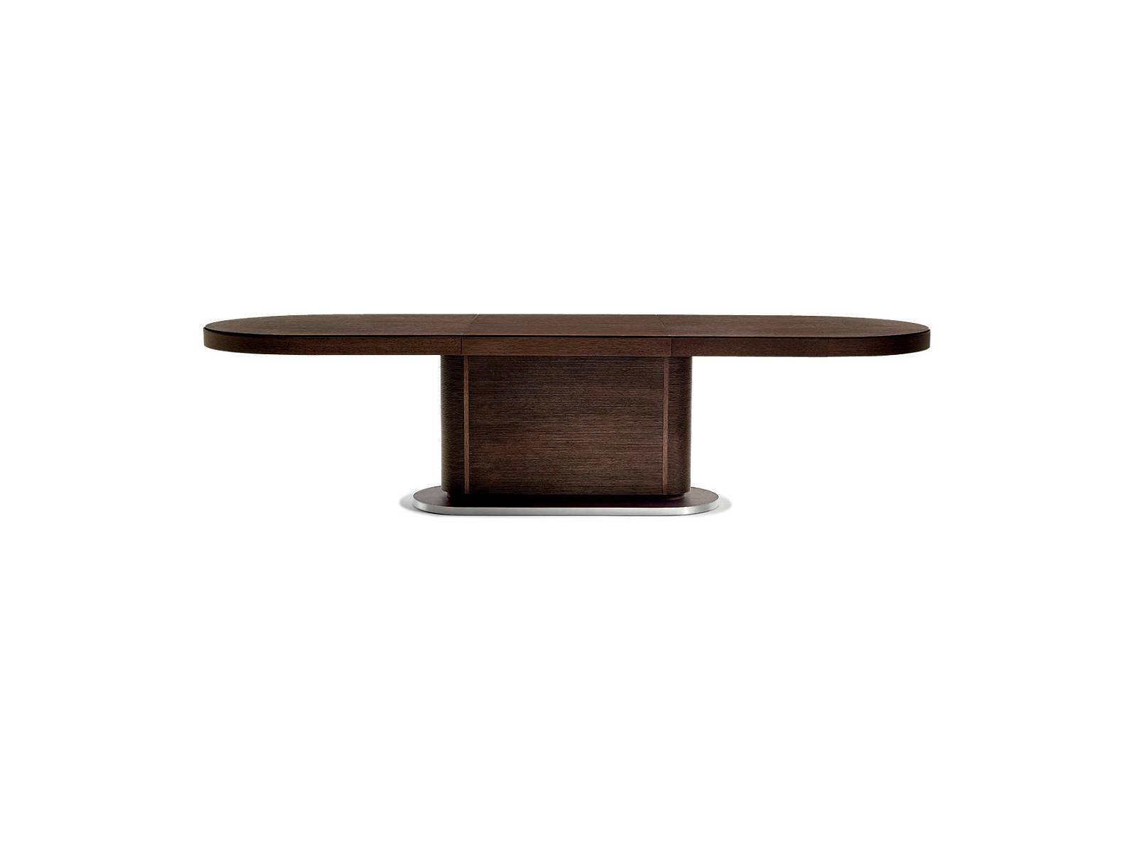 Строгий, линейный стиль компенсирует солидные пропорции этого стола. И.К.С. Tavolo был создан Роберто Лаццерони в 1999 году, черпая вдохновение из итальянского дизайна 20-го века. Часть коллекции, которая изначально была обширной и всеобъемлющей (в которую входят ICS стол, консоль, письменный стол, комод), это изделие изготовлено из массива американского ореха и шпонированной фанеры. Доступен в различных размерах – круглых, овальных, квадратных или прямоугольных. Его наиболее отличительной и инновационной особенностью является рифленая текстура, которая также характерна для мебели для хранения из той же коллекции. Эффект создается путем наложения перекрывающихся слоев шпона друг на друга перед их фрезерованием, чтобы создать своего рода эффект накатки. Этот стилистический выбор придает элегантность и помогает Ceccotti Collezioni стать лидером в области мастерства. Основная рама изготовлена из сатинированной нержавеющей стали, но также доступна в полированной латуни, чтобы удовлетворить различные требования к стилю.