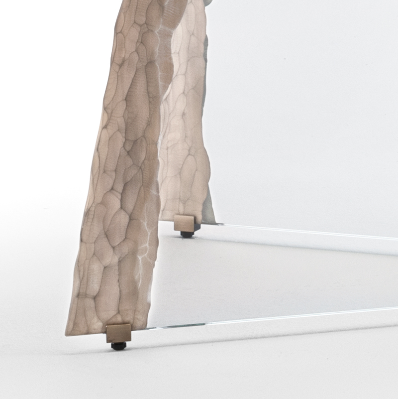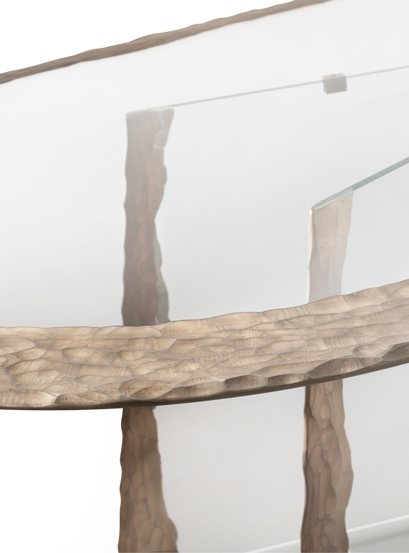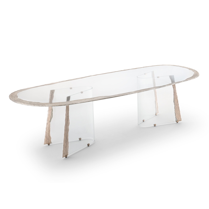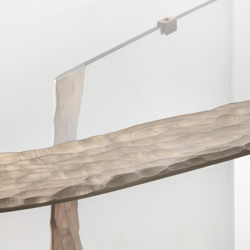 Края столешницы и оснований украшены гравировкой, выполненной алмазным кругом, и покрыты серебром.
