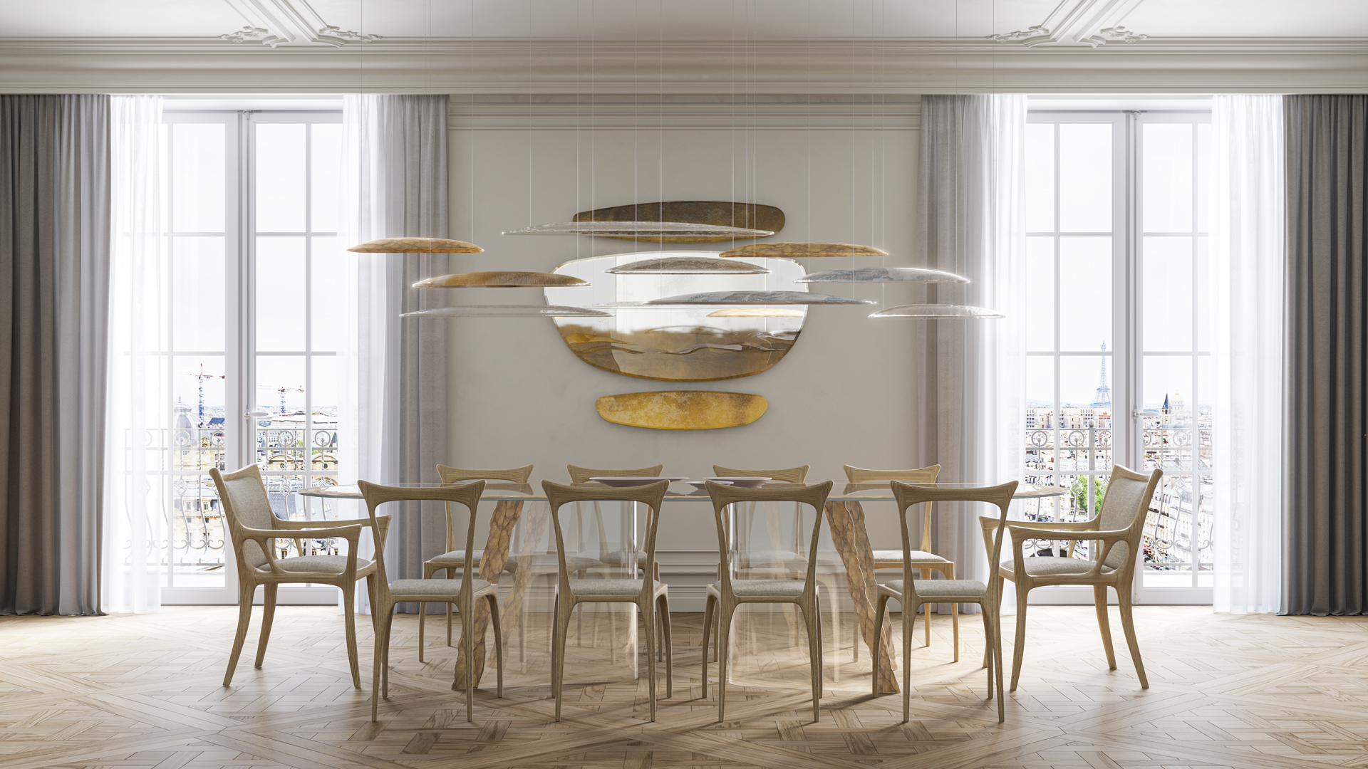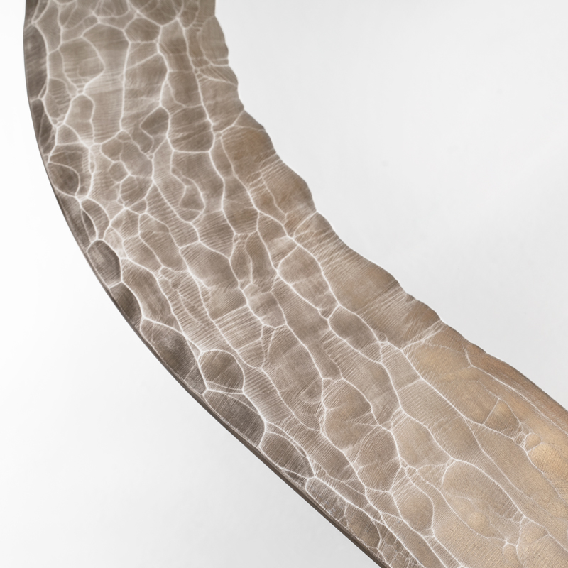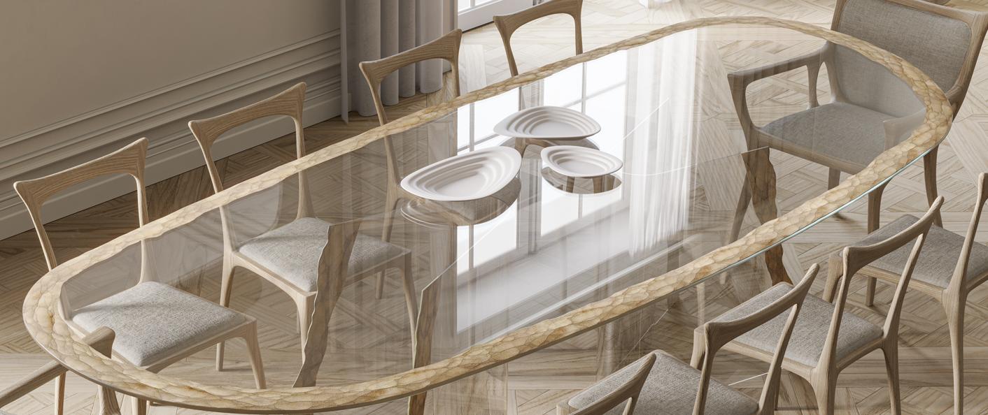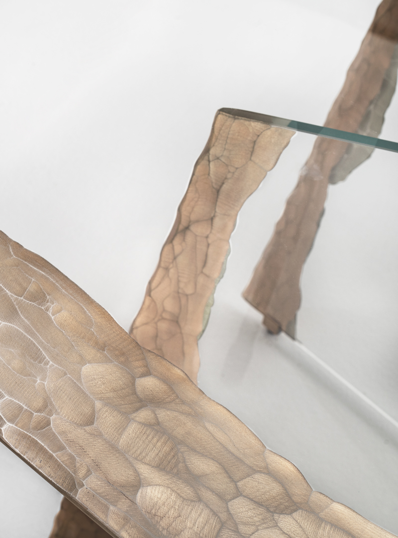Края столешницы и оснований украшены гравировкой, выполненной алмазным кругом, и покрыты серебром.