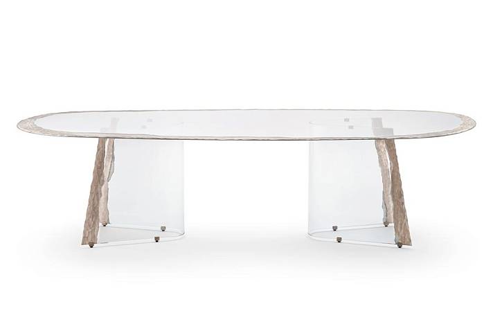 Столешница и два гнутых основания выполнены из прозрачного стекла.