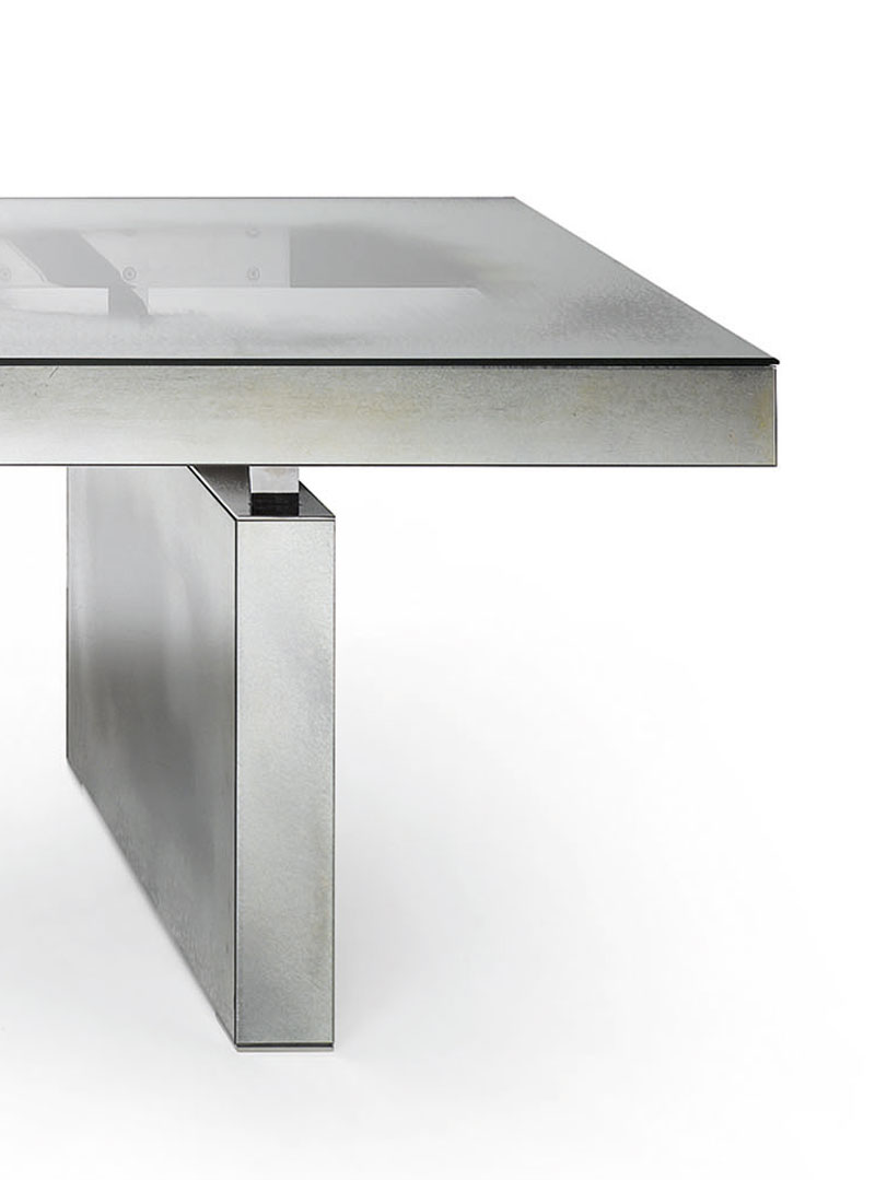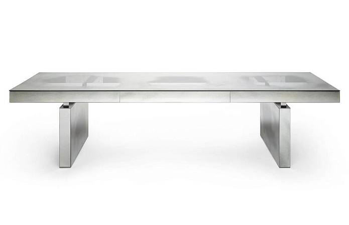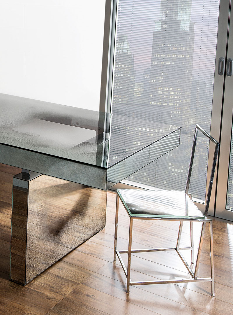 Стеклянный стол с декором Lagune - по краям столешница и основания выполнены в отделке состаренное зеркало, а посередине - прозрачное стекло.