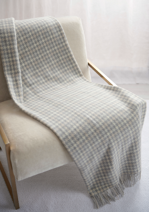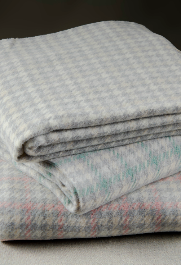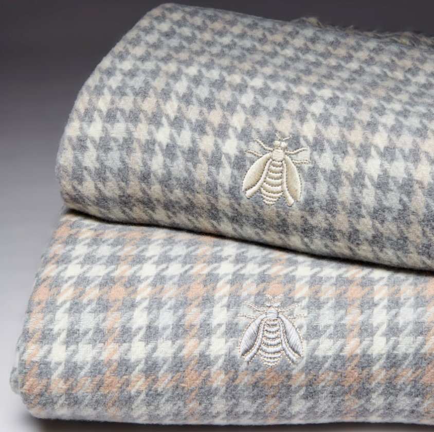 Плед Amir pied de poule с вышивкой серый/розовый