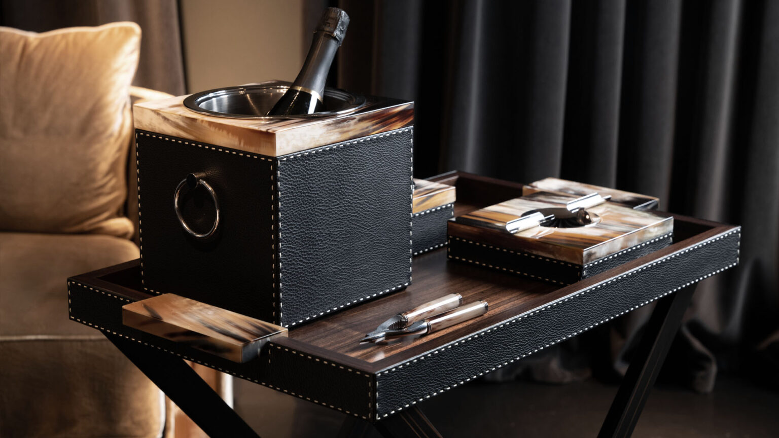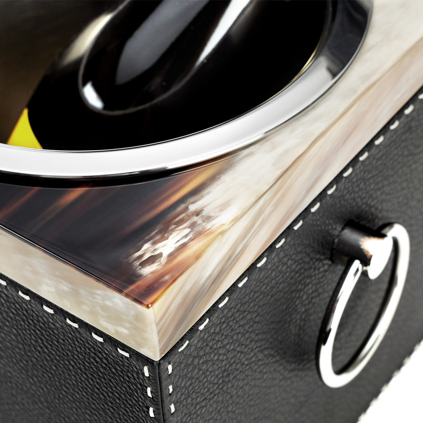 Мы используем только рог зебу Bos Taurus, добываемый с учётом этических норм. Этот материал проходит сложную обработку, требующую мастерства и времени: сначала его отбирают, затем подвергают термообработке, полируют и соединяют вручную, раскрывая естественную красоту текстуры.