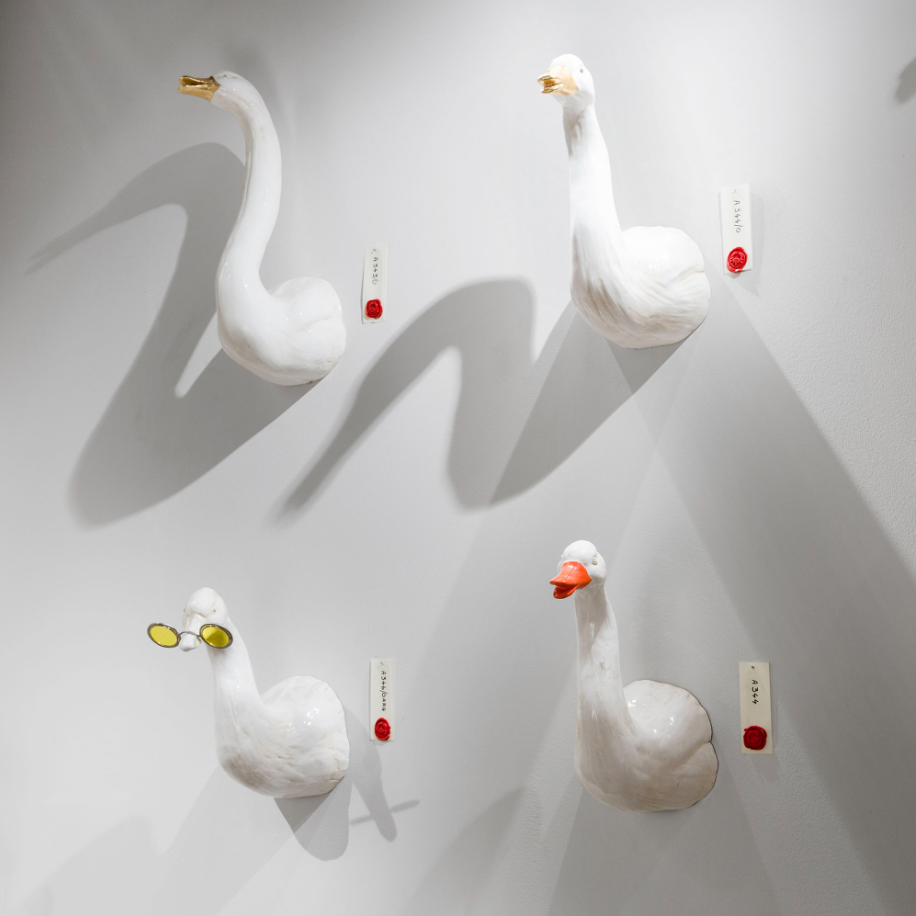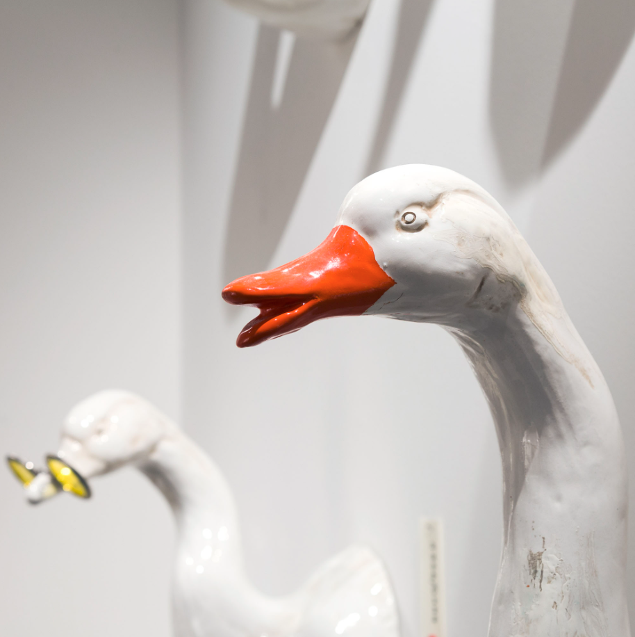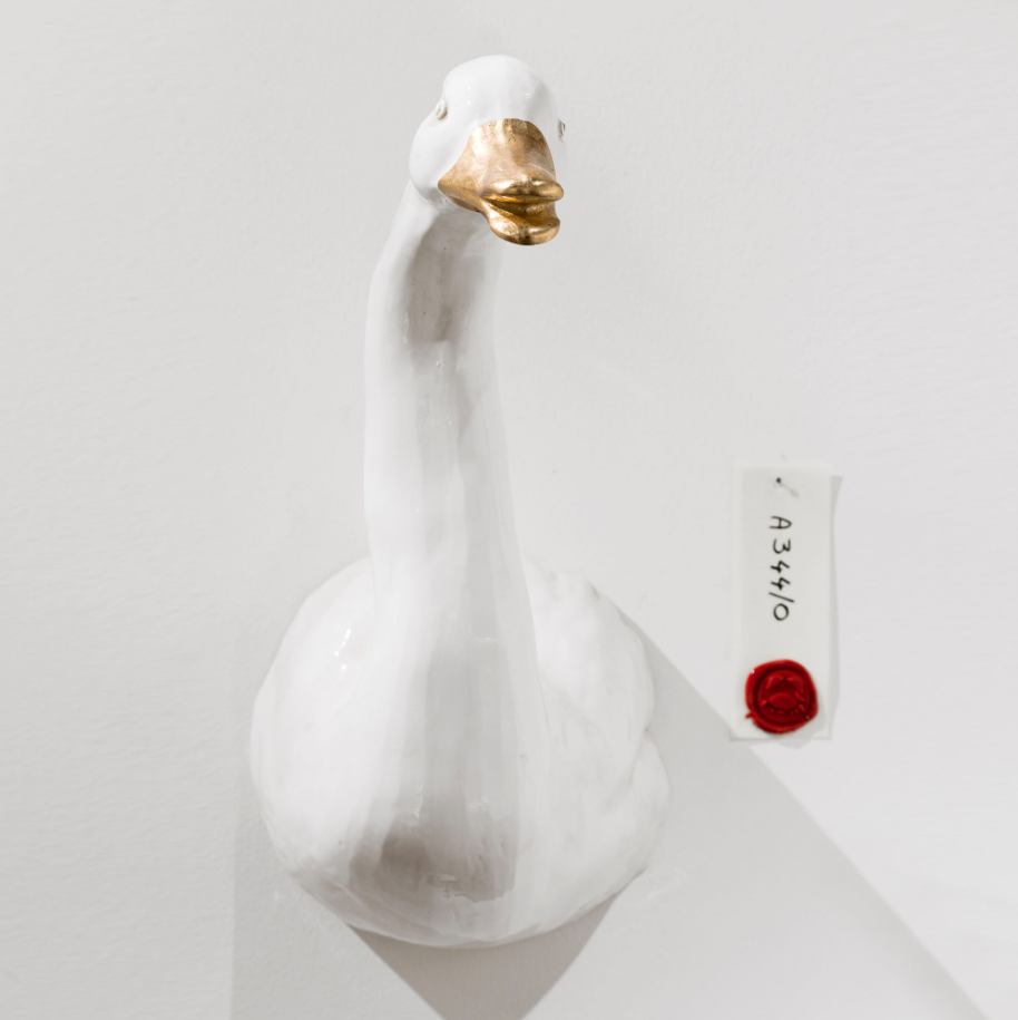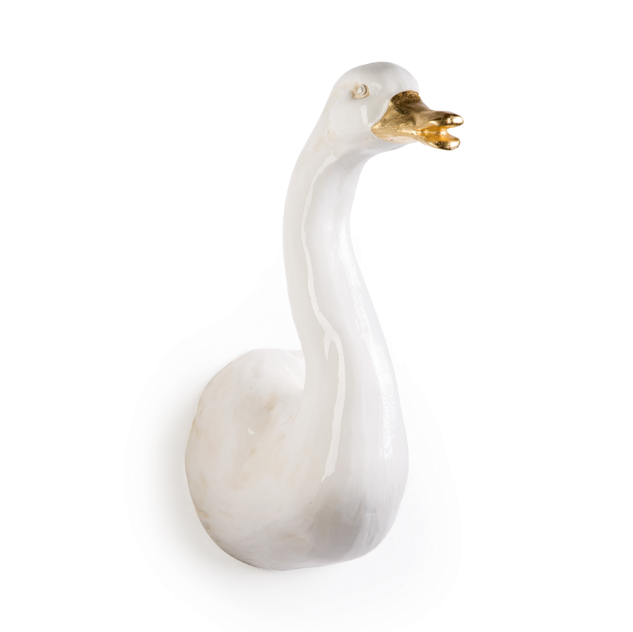 Настенная скульптура гусь из майолики.