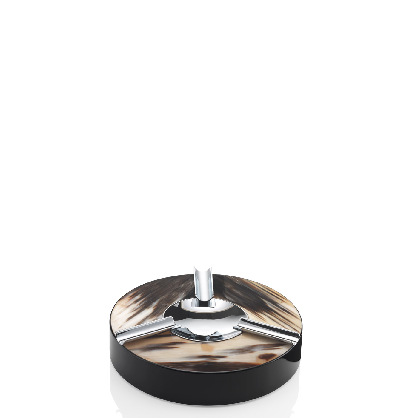 Пепельница оснащена вставкой из хромированной латуни и двумя надёжными подставками для сигар.