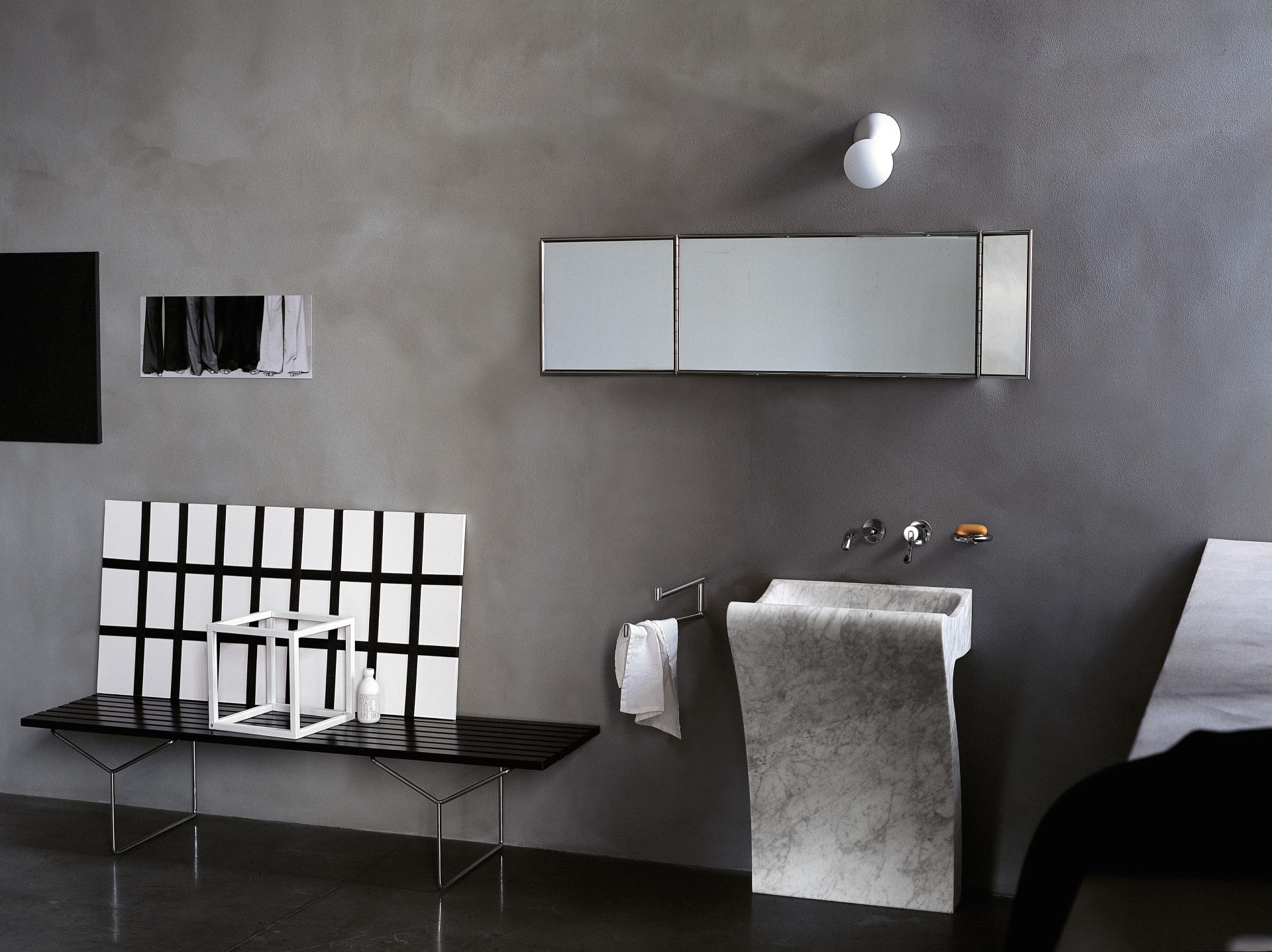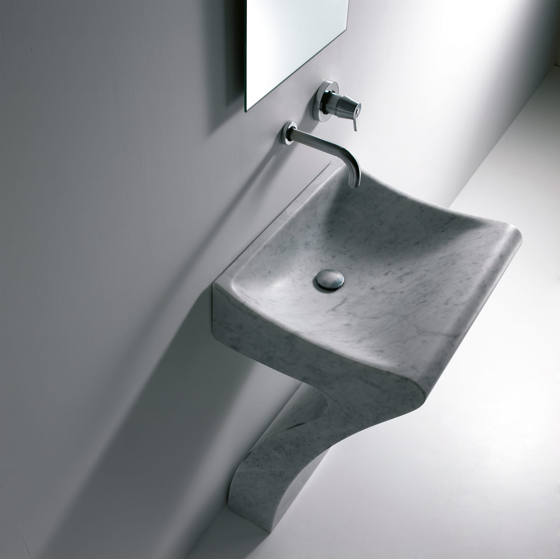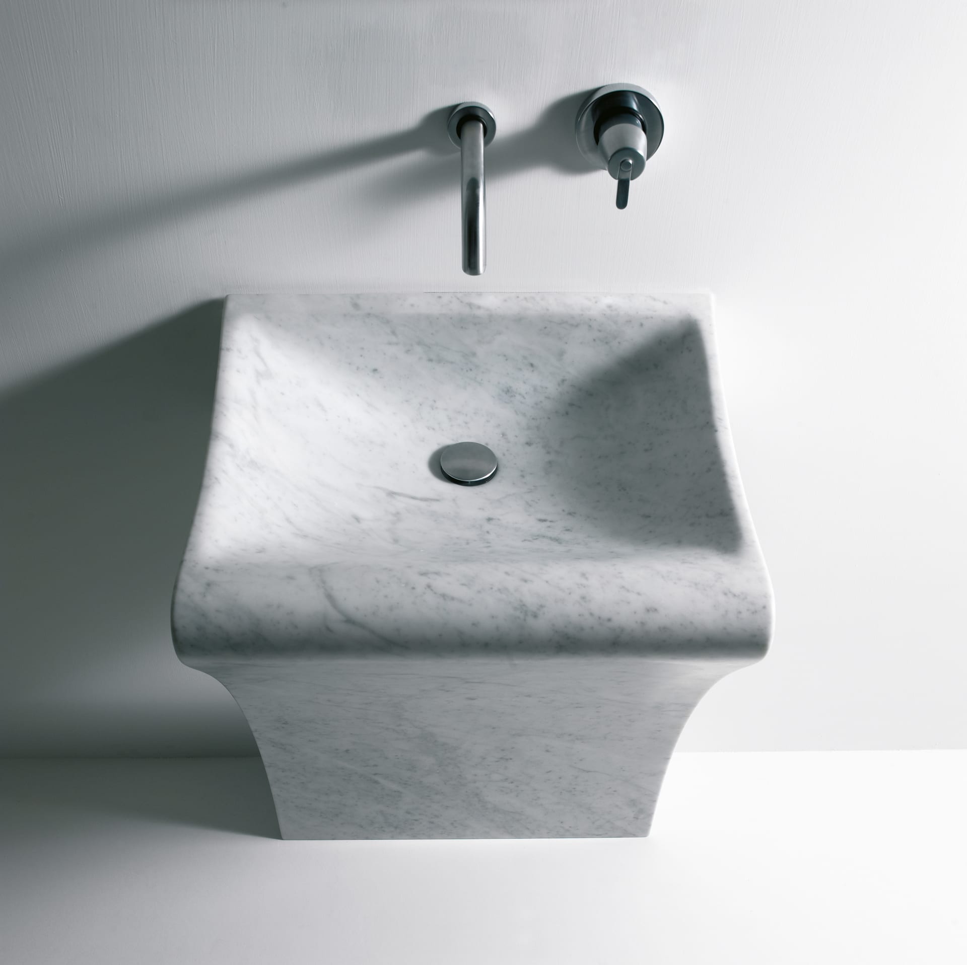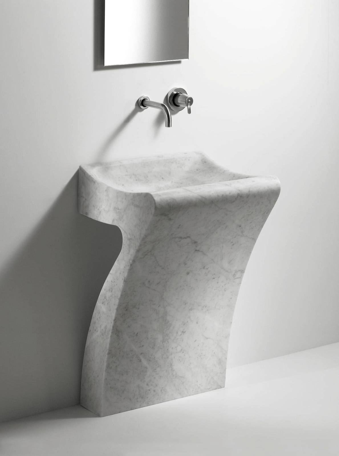 Полностью вырезанный из цельного куска мрамора, Lito 1 имеет форму перевернутой буквы «L» с аккуратно выгнутой чашей.