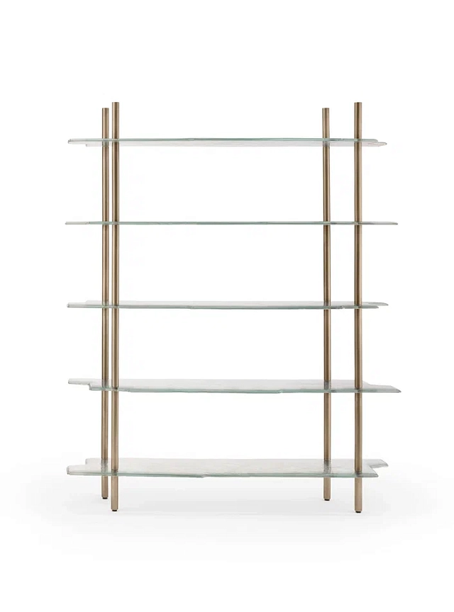Полки выполнены по уникальной технологии из двух слоев стекла, запеченных вместе. и частичным серебрением сзади.Металлический каркас с полированной латунной отделкой.