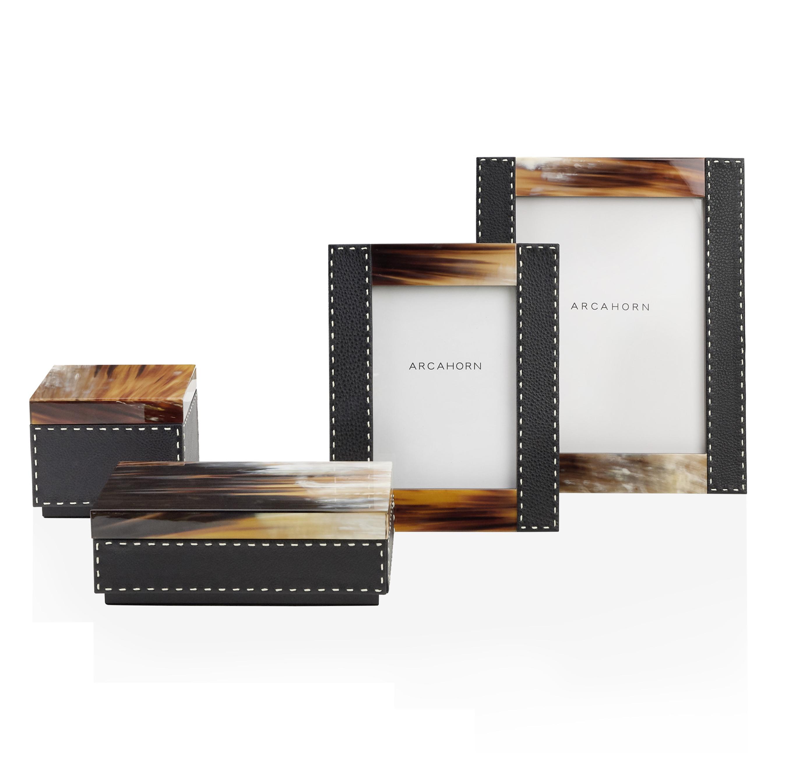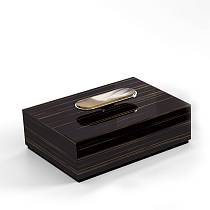 Крышка, выполненная из полированного рога, привлекает внимание своей природной текстурой и изысканными прожилками, становясь настоящим декоративным акцентом.