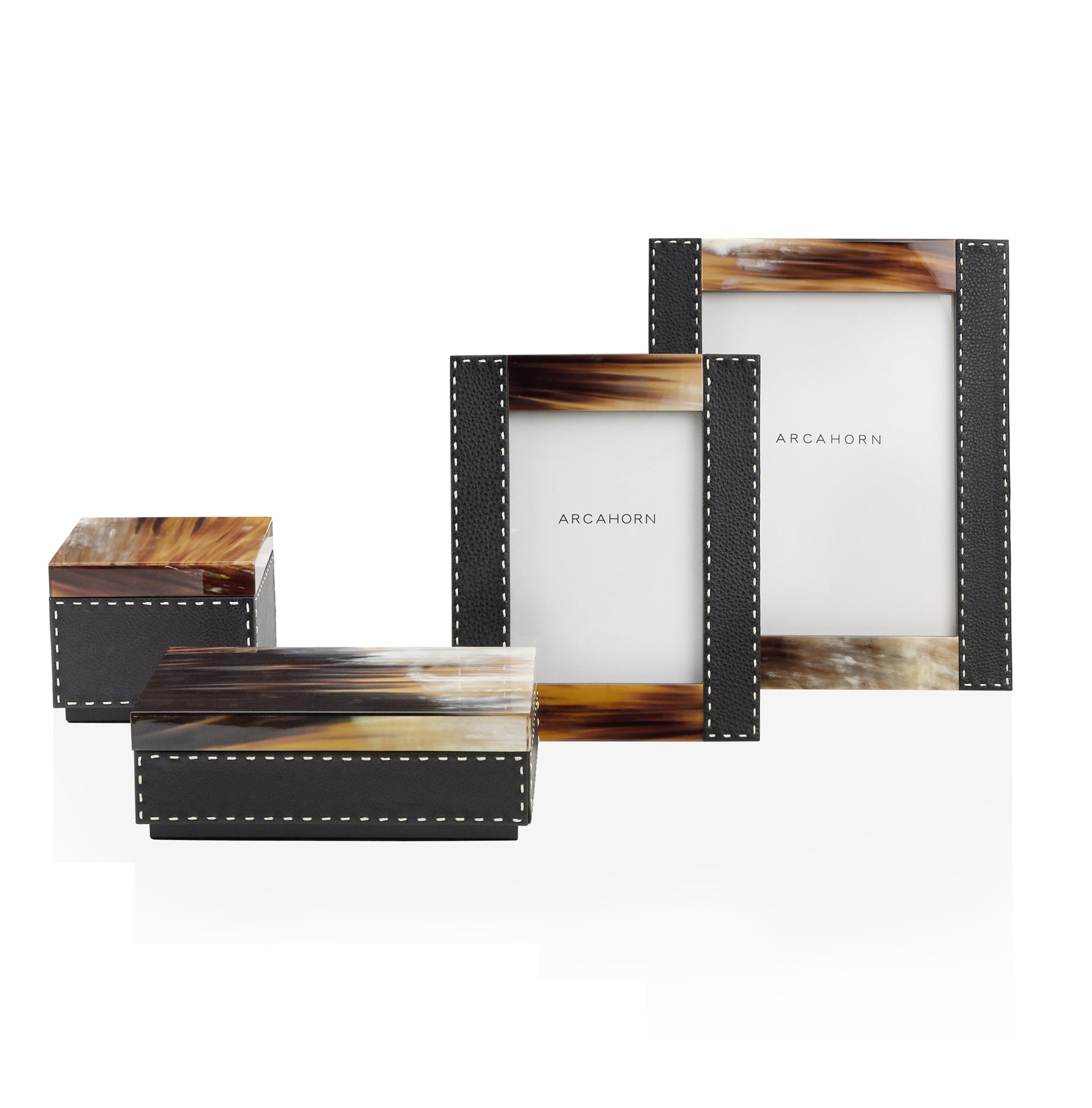 Крышка, выполненная из полированного рога, привлекает внимание своей природной текстурой и изысканными прожилками, становясь настоящим декоративным акцентом.