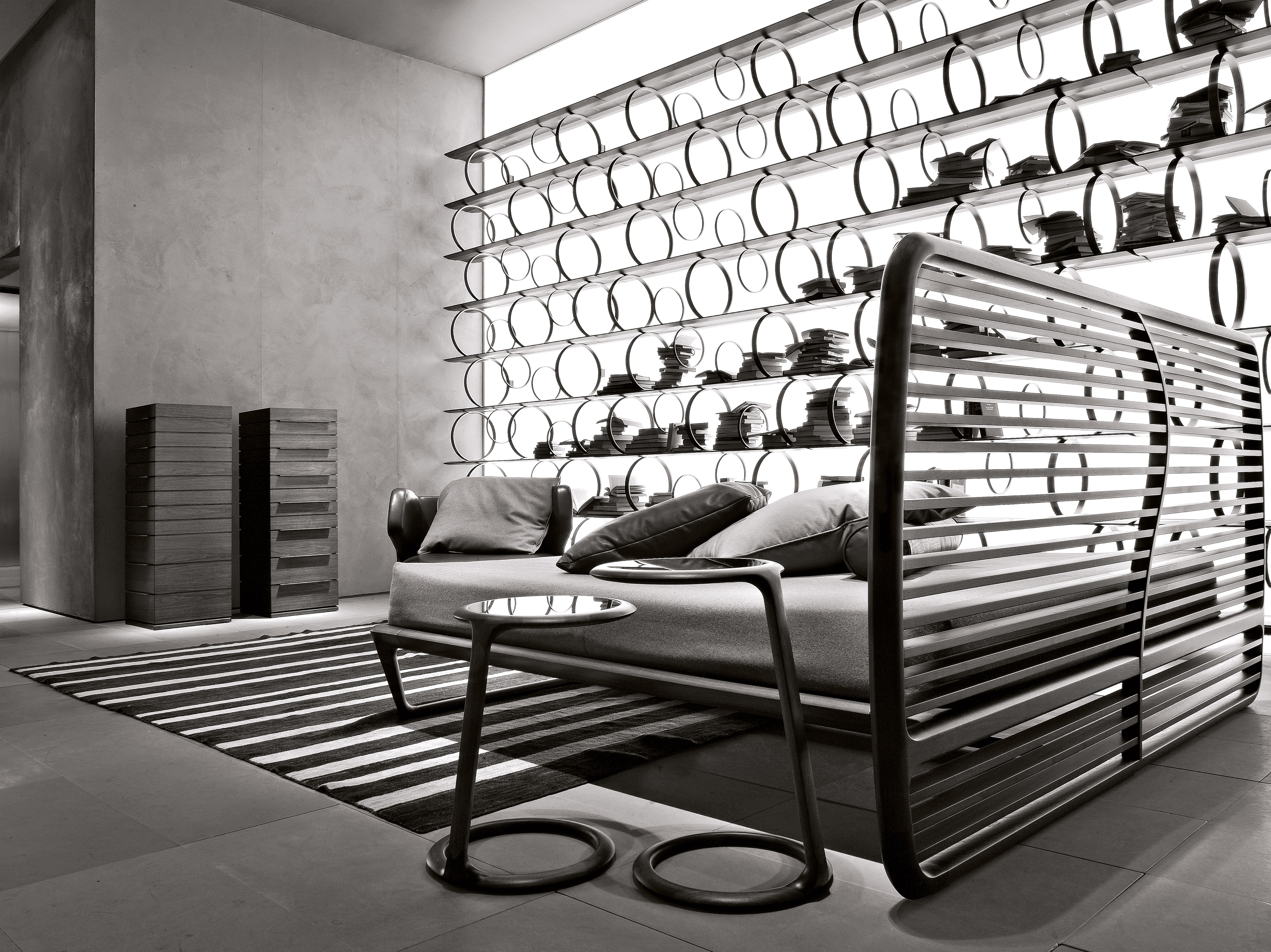 Золотая клетка была создана в 2007 году в результате плодотворного сотрудничества с дизайнером Винченцо Де Котиисом. Благодаря своим массивным криволинейным формам и латунной отделке книжный шкаф вдохновлен славными 1920-ми годами, напоминая настроение начала 20-го века. Икона дизайна, подчеркивающая непревзойденное мастерство и производственный опыт компании. Современная классика, которая по-новому интерпретирует концепцию книжного шкафа, излучая свое очарование в любой обстановке. Доступный в двух разных размерах, он изготовлен из латунных стержней диаметром 10 мм, сваренных и обработанных щеткой полностью вручную. Почти «домашняя скульптура», выставленная в центре комнаты. В то же время он еще и функционален. Фактически, как следует из названия, «Золотая клетка» предназначена для защиты наших самых ценных вещей.