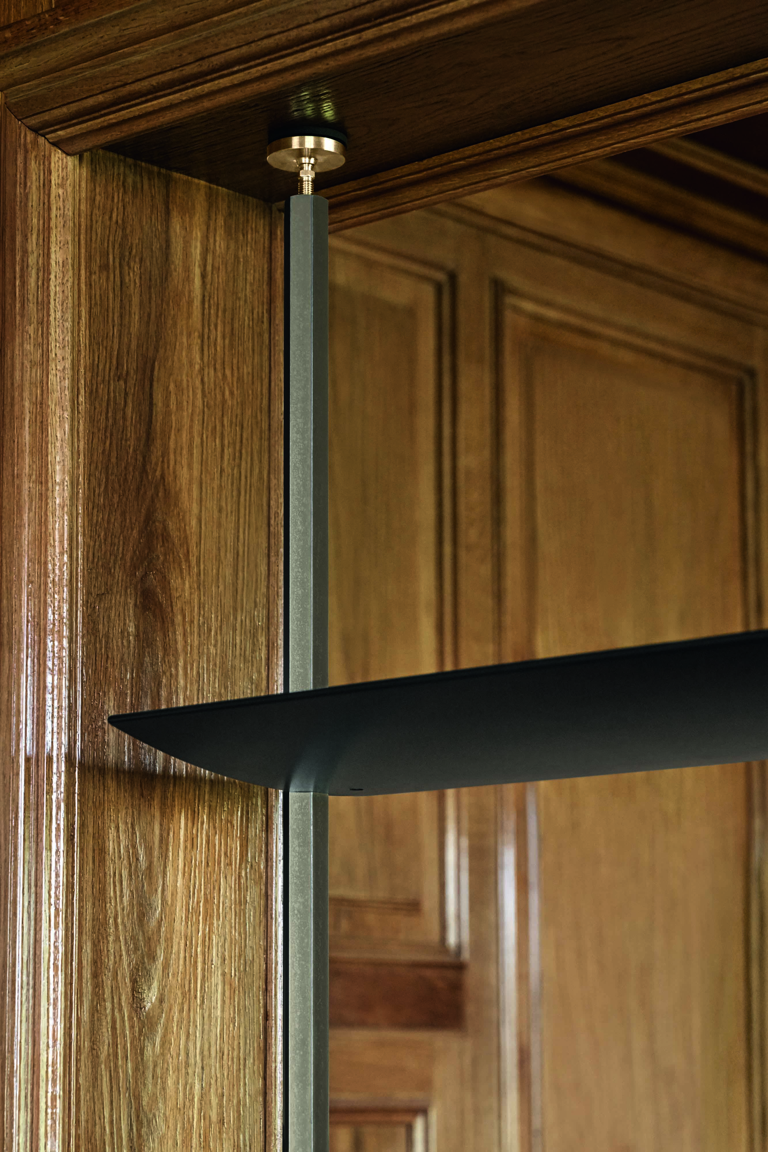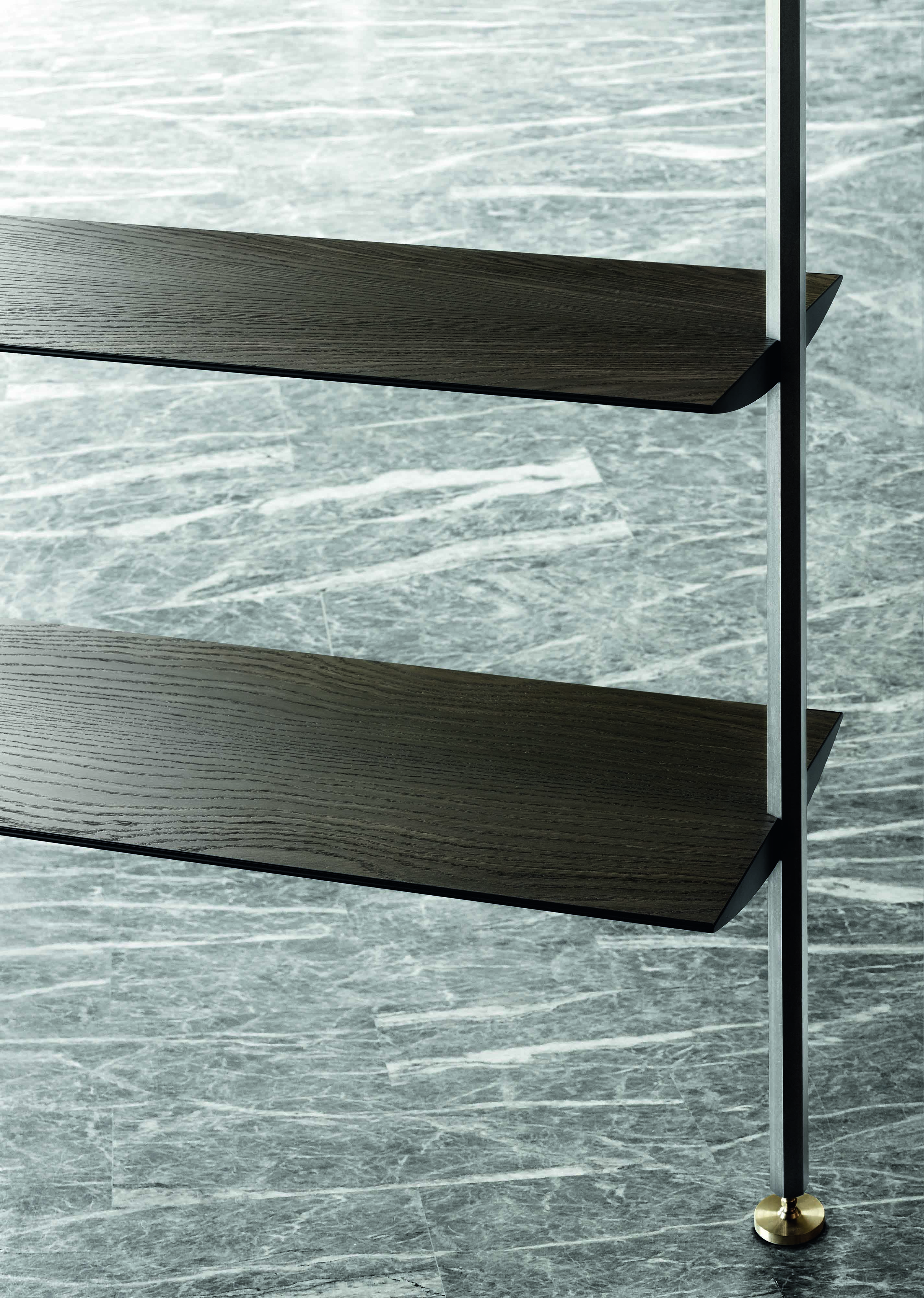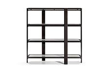 Металлические стойки. Полки отделаны шпоном или окрашены.