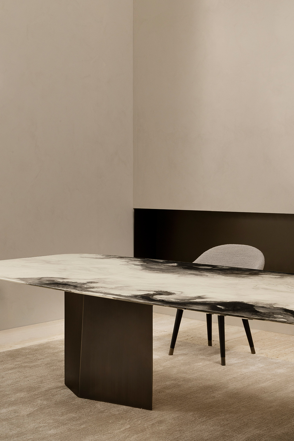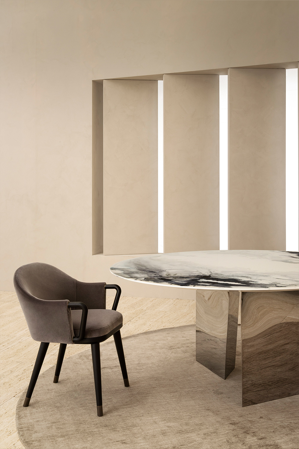 Металлическое основание бронзовая латунь или хром. Отделка столешницы: натуральный камень или художественная роспись.