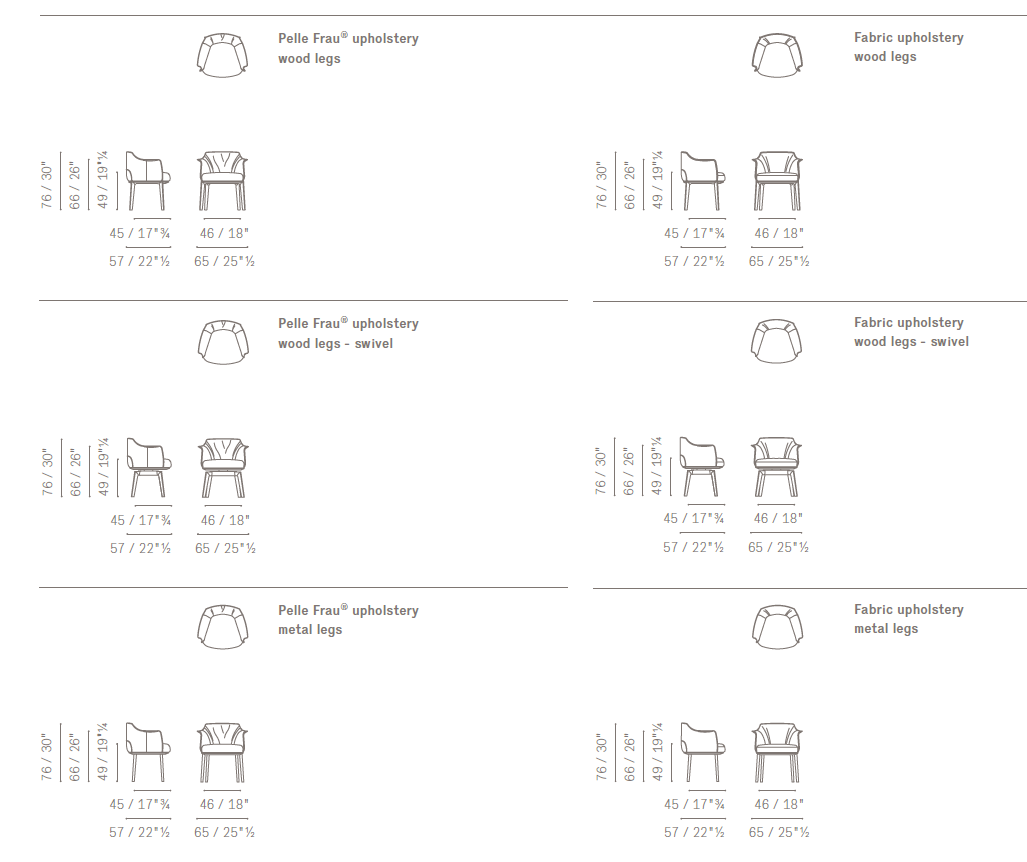 Уже в начале 20 века продукция фабрики, что переводится как «кресло Фрау», отличалась передовым дизайном и шла на шаг впереди других брендов. Фабрика сотрудничала с известными архитекторами, среди которых Rodolfo Dordoni, Gastone Rinaldi, Carlo Colombo, и продолжает привлекать к созданию своих проектов знаменитых дизайнеров. Изначально Poltrona Frau проектировала мебель в стиле Chester для контрактного сектора, выпуская дорогие изделия для яхт (Pershing), самолетов, театров, звездных гостиниц, авто (Ferrari, BMW, Maserati, Rolls Royce, Lexus). Постепенно она приступила к созданию мебели для дома и полностью перешла к современному стилю. Сегодня фабрика внесена итальянскими властями в список исторических брендов, представляющих национальный интерес. Всегда верная своей идентичности и ценностям, Poltrona Frau никогда не теряла своего стремления или страсти к новым инновационным дизайнерским решениям, стилям и языкам общения.