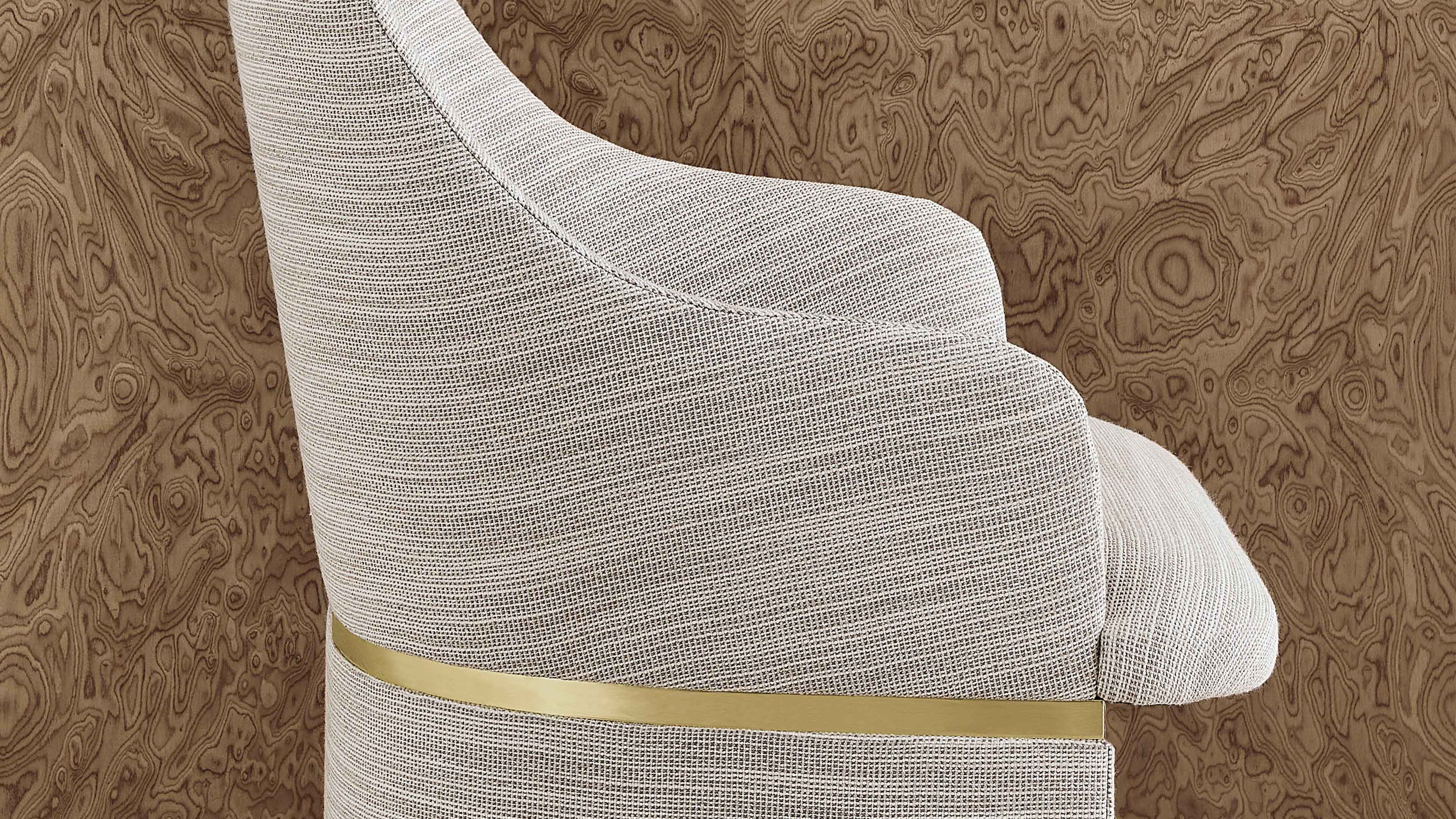 Обивка из ткани или кожи. Металлические детали основания в отделке бронзовая латунь или золото