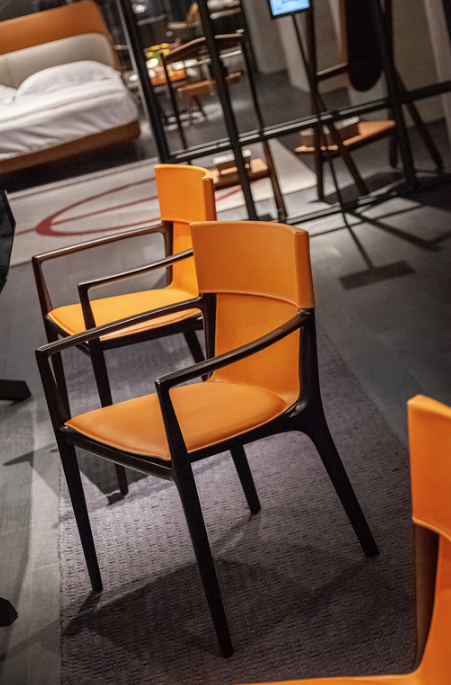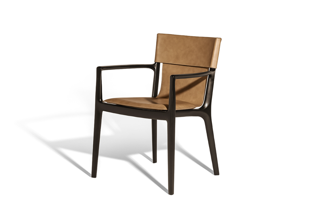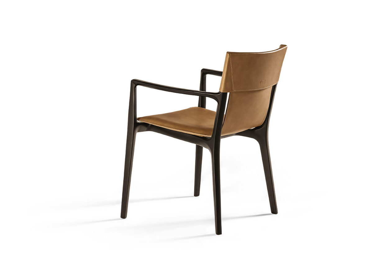 Каркас из массива ясеня в цвет Moka, спинка и сиденье – кожа 31 CS Quarzo Fume