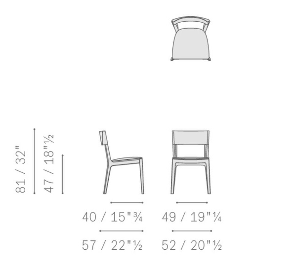 49 или 52 х 57 х h 81, h сиденья 47 см.