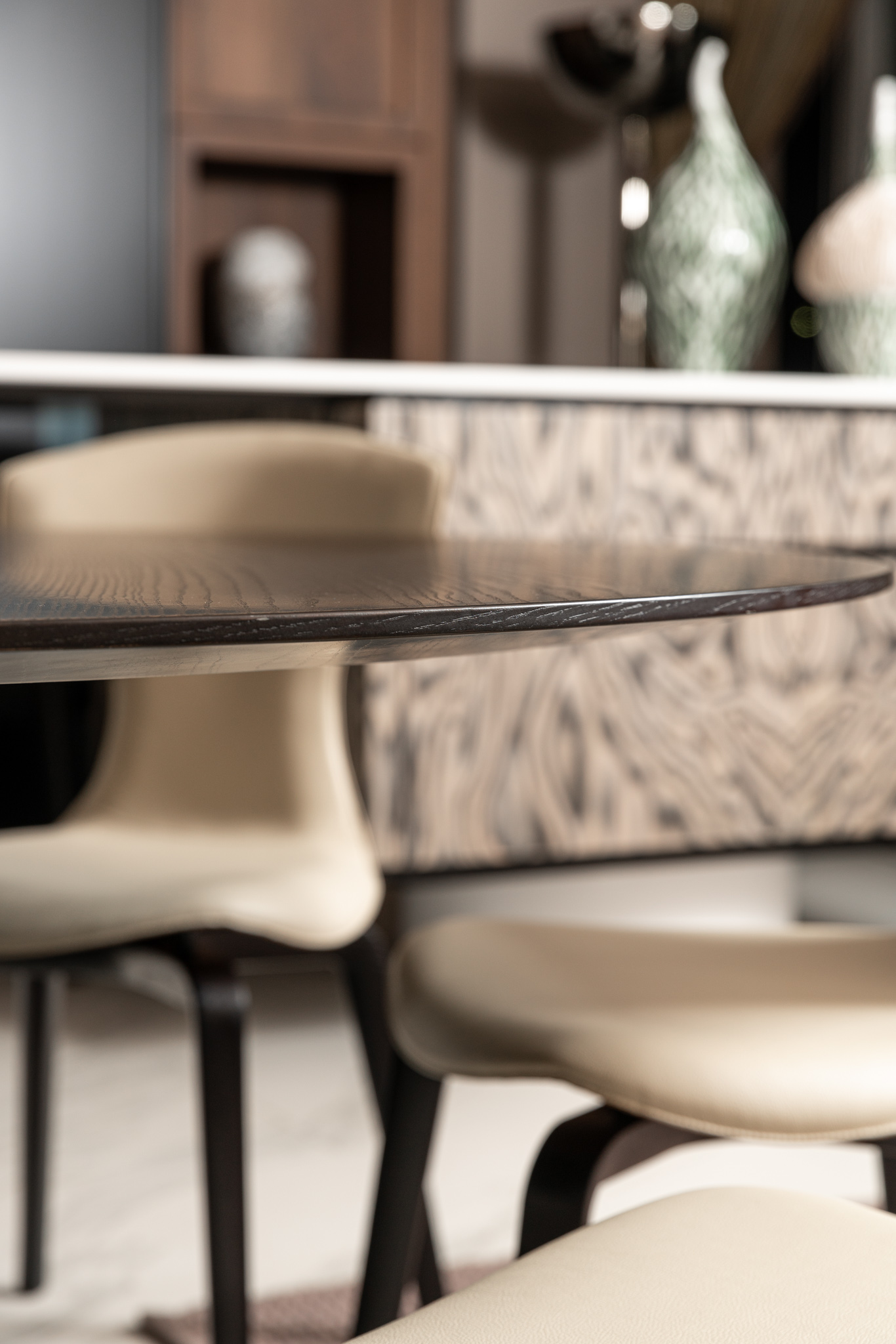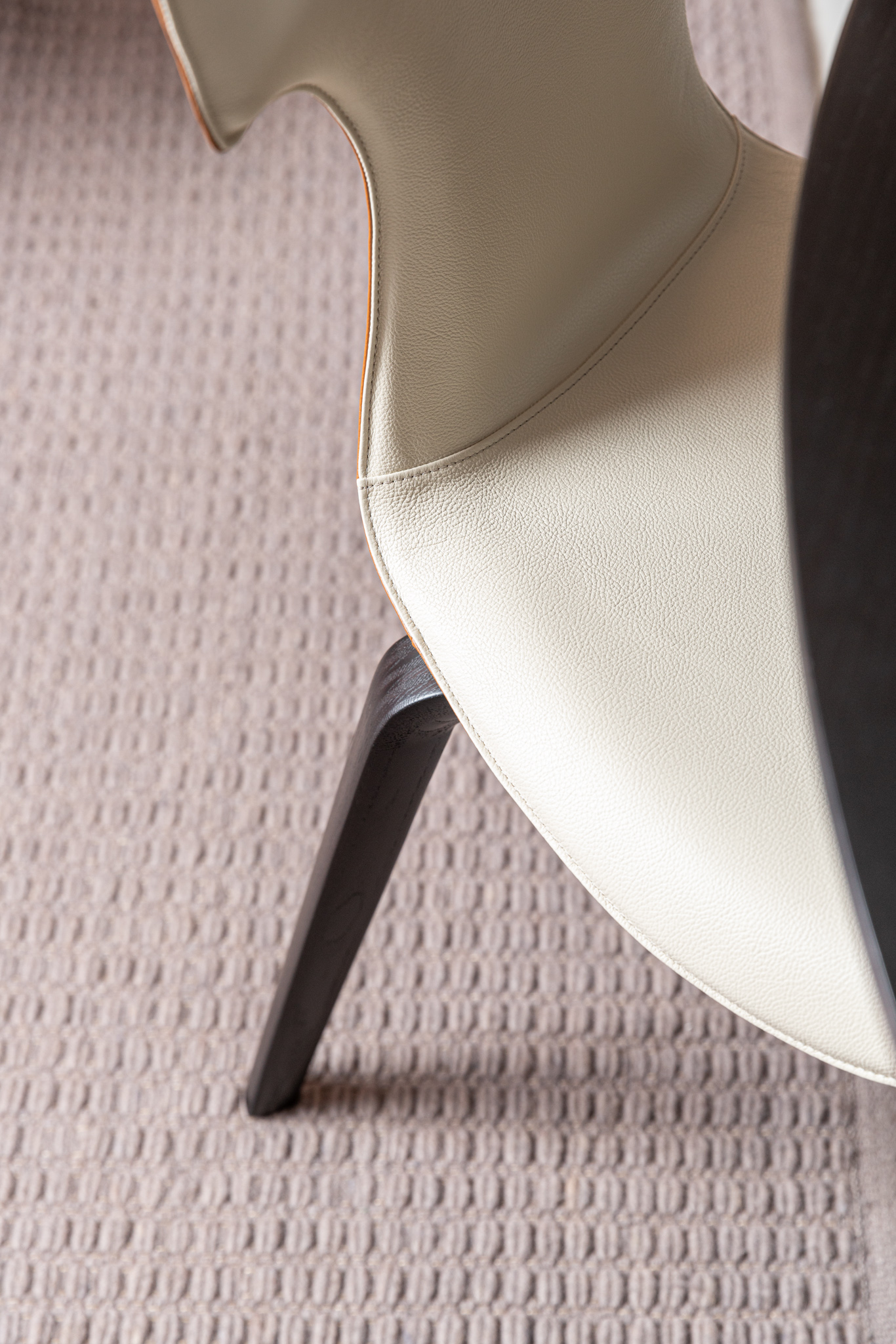 Сидение в бежевой коже SC 33 Travertino, ножки из массива в отделке wenge