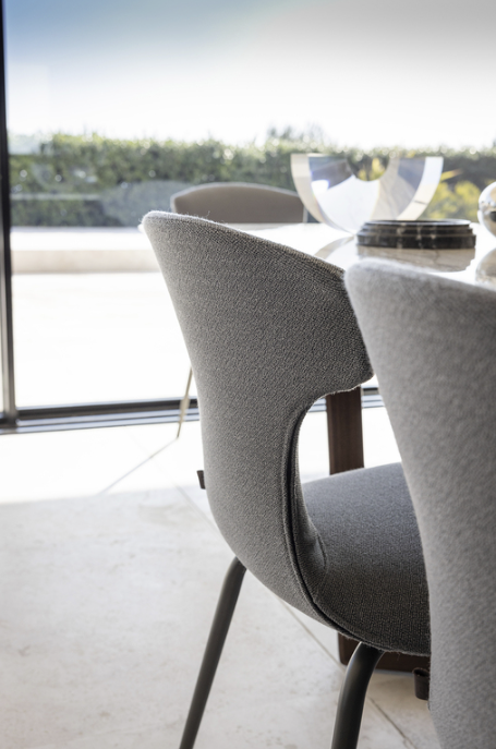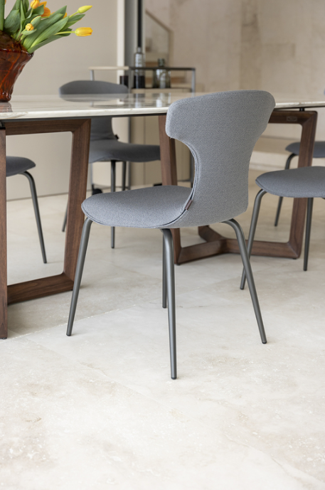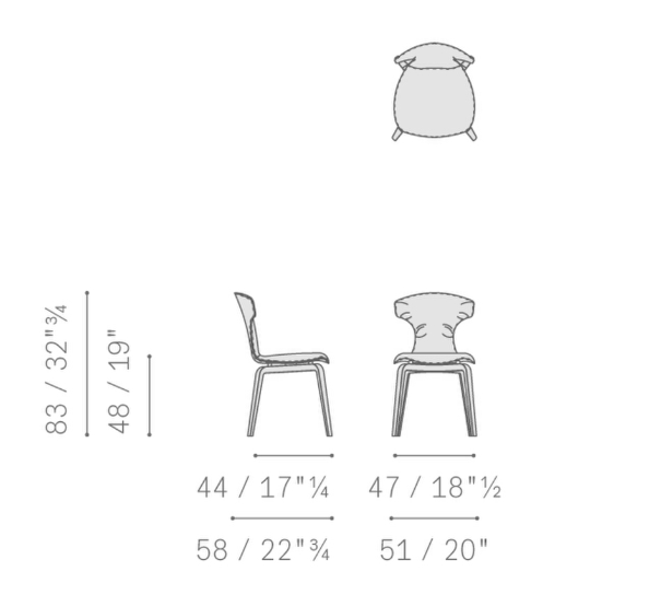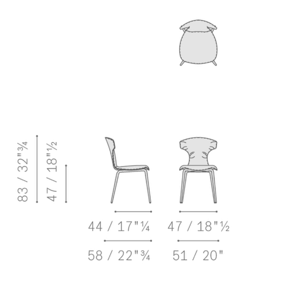 Кожа или ткань. Возможна комбинация двух цветов кожи Pelle Frau SC. Сиденье наполнено пенополиуретановой пеной. Ножки металл или дерево.