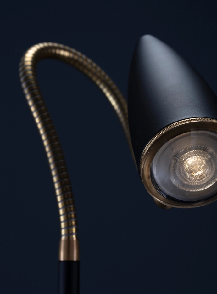В обновлённом дизайне латунные плафоны уступили место более современным — вытянутой формы в чёрном и белом цветах. Латунь сохранилась лишь в качестве акцентов: на стойках и обрамлении линз.