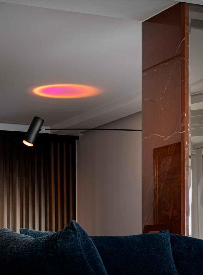Ettorino BIG — это напольный светильник, созданный для освещения гостиных и просторных столовых. Благодаря мощной светодиодной COB-лампе и широкоугольной оптике он обеспечивает исключительно равномерное и комфортное распределение света.