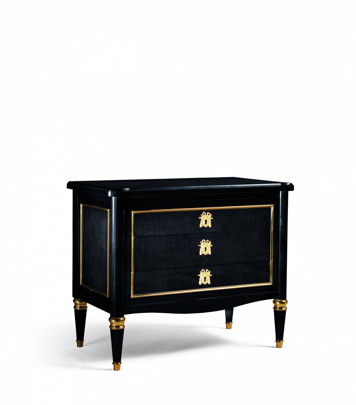 Ночной столик Людовик XVI, 3 ящика с замком, деревянная столешница. ОТДЕЛКА T/NERO with golden profiles, golden brass