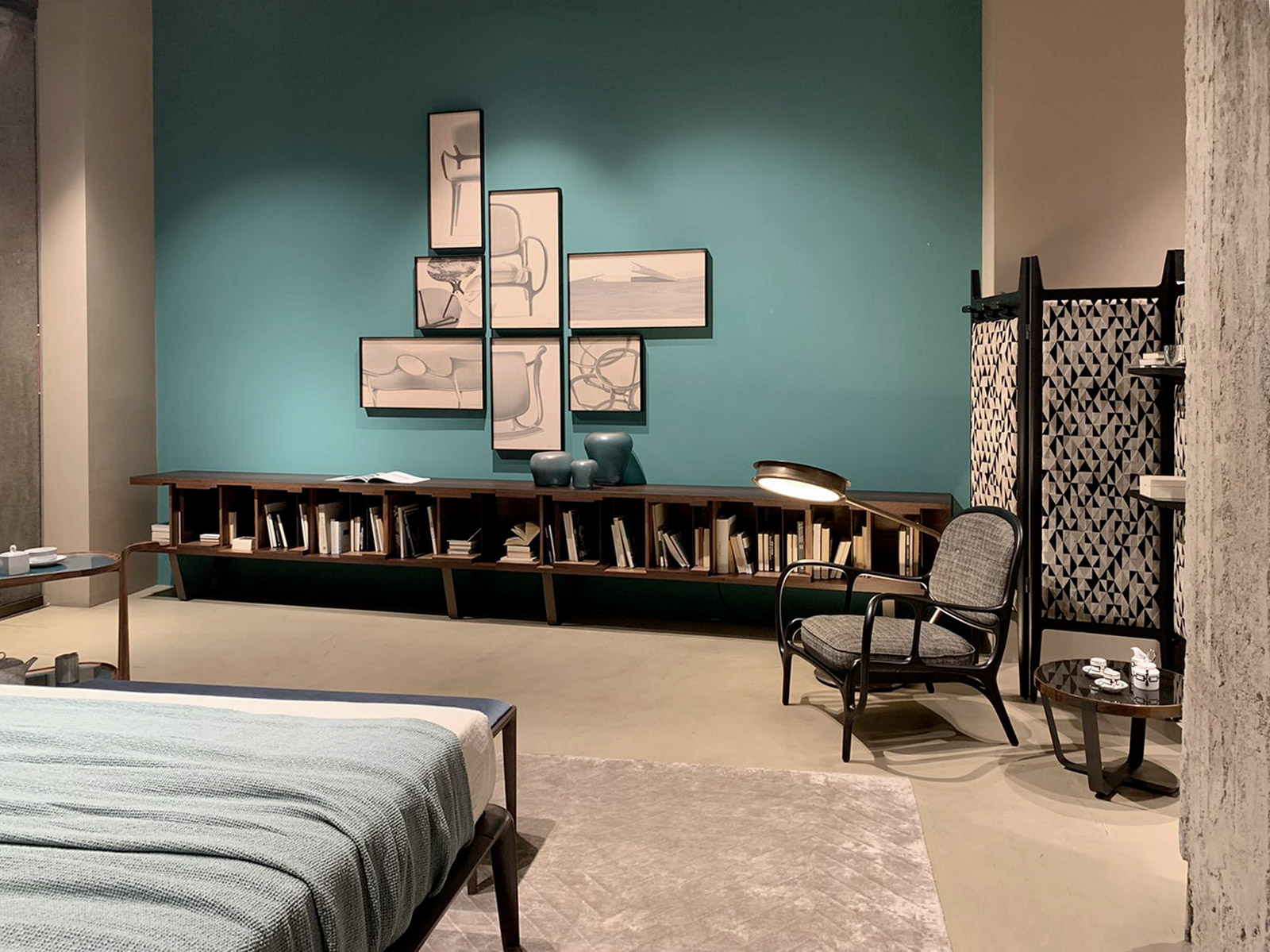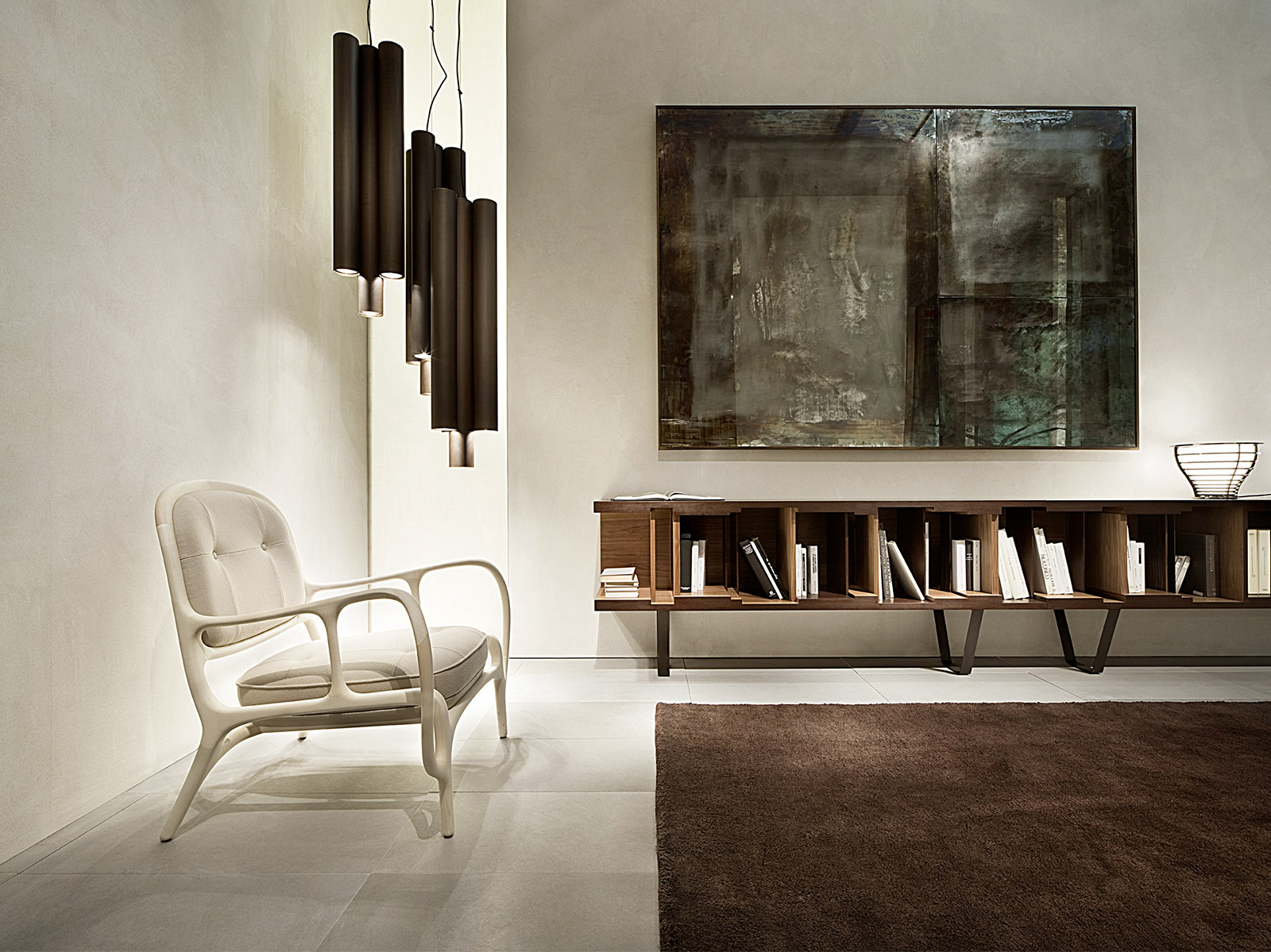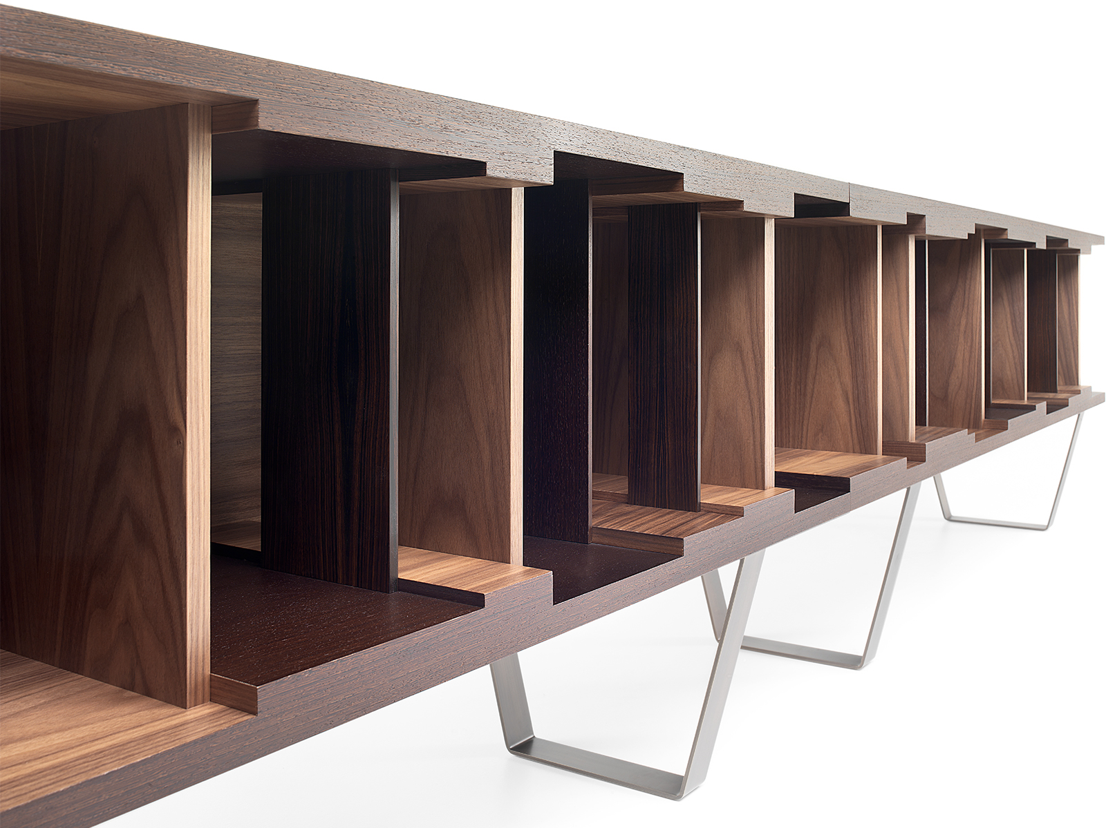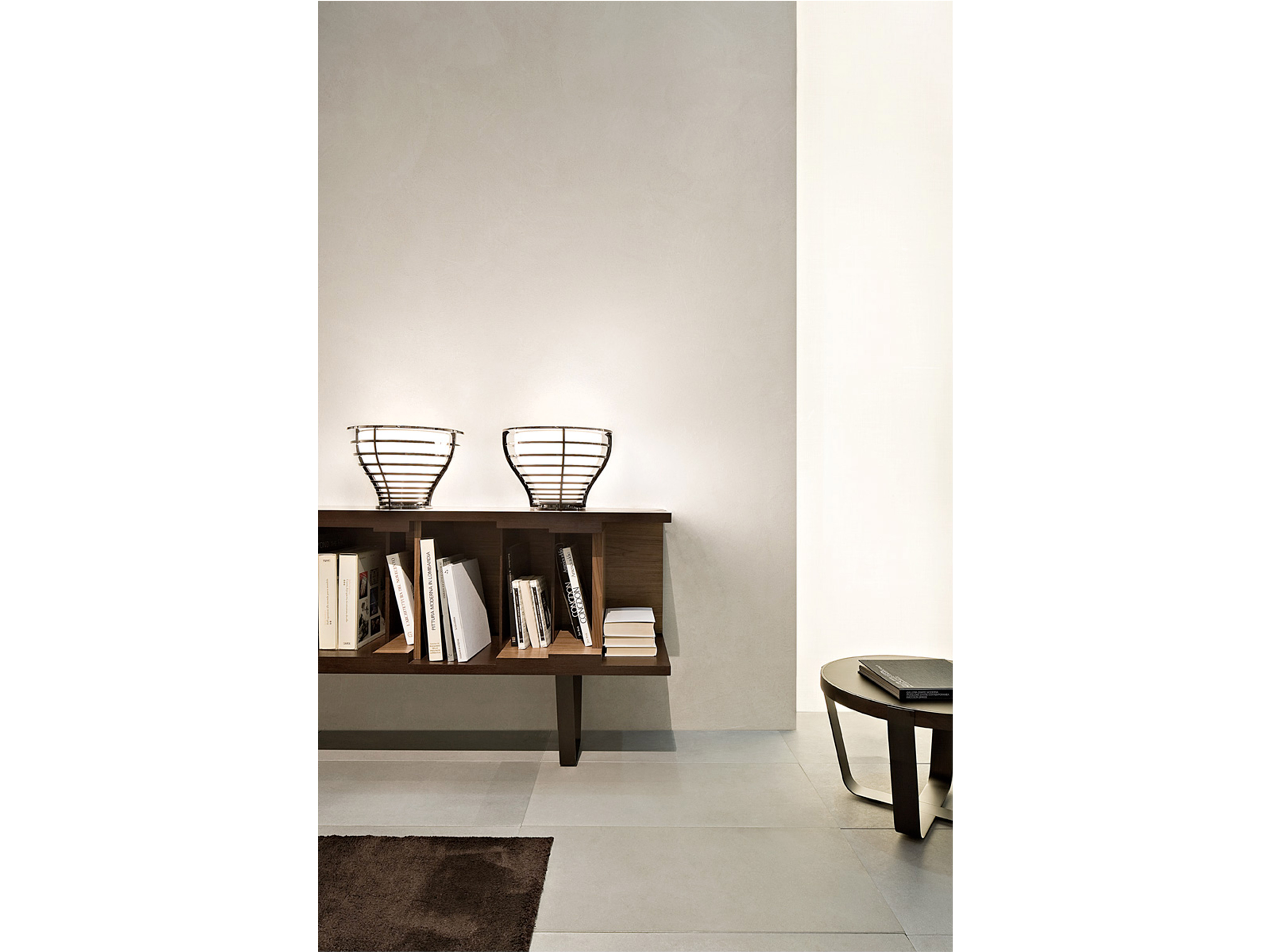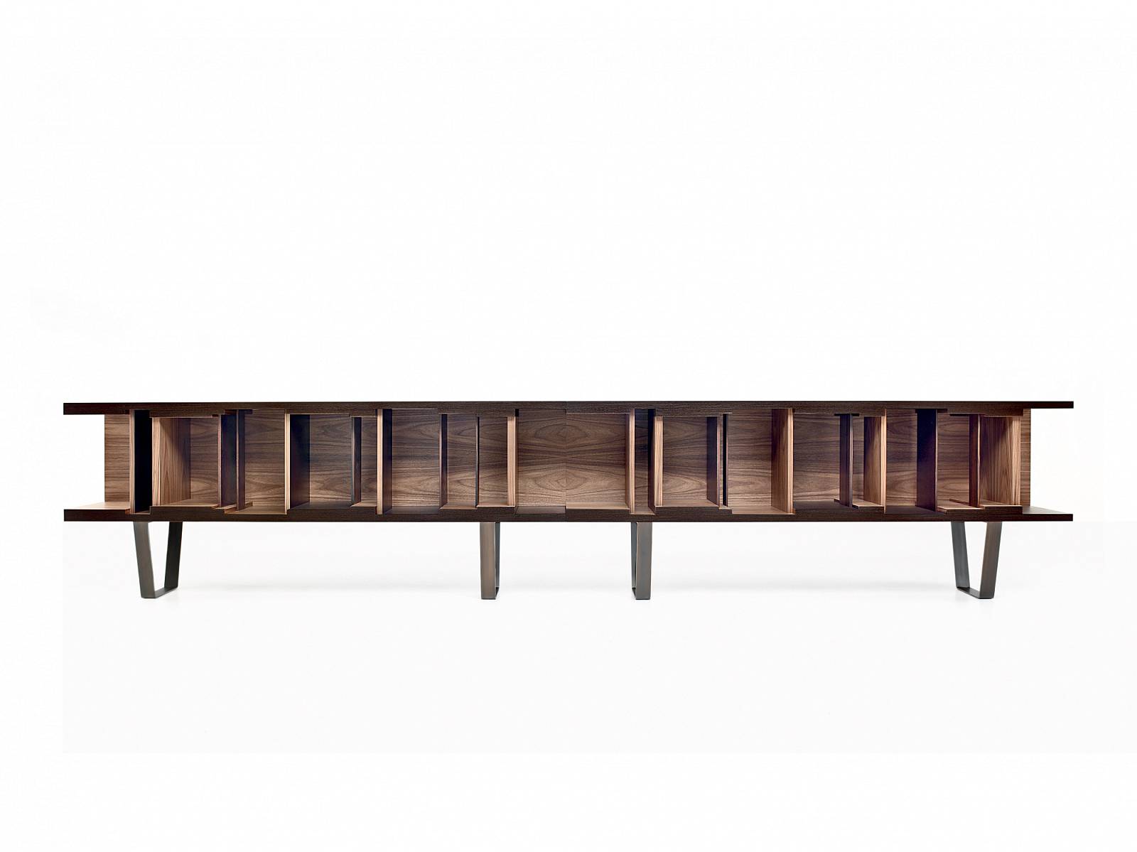 Вдохновленный концепцией гибкости дизайна и эстетической универсальности, DC 200/DC 250 представляет собой модульный книжный шкаф цвета венге. Он особенно примечателен своей элегантной полированной латунной основой, которая придает ему современный вид. Характерные графические линии, спроектированные Винченцо Де Котиисом в 2009 году, подчеркнуты внутренней отделкой из американского ореха и разделительными панелями из американского ореха, черного дерева и венге. Доступен в двух вариантах длины и крепится на стену.